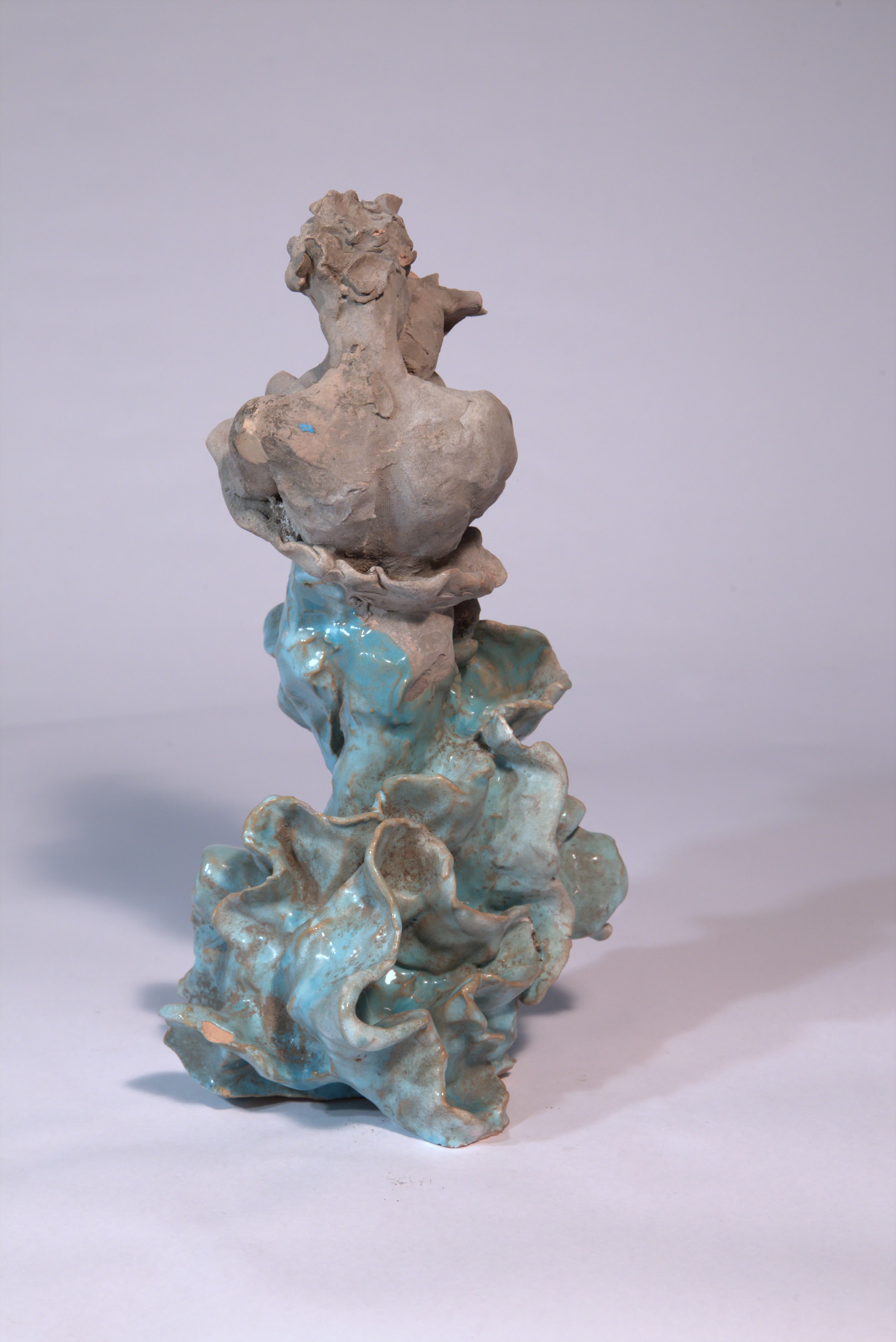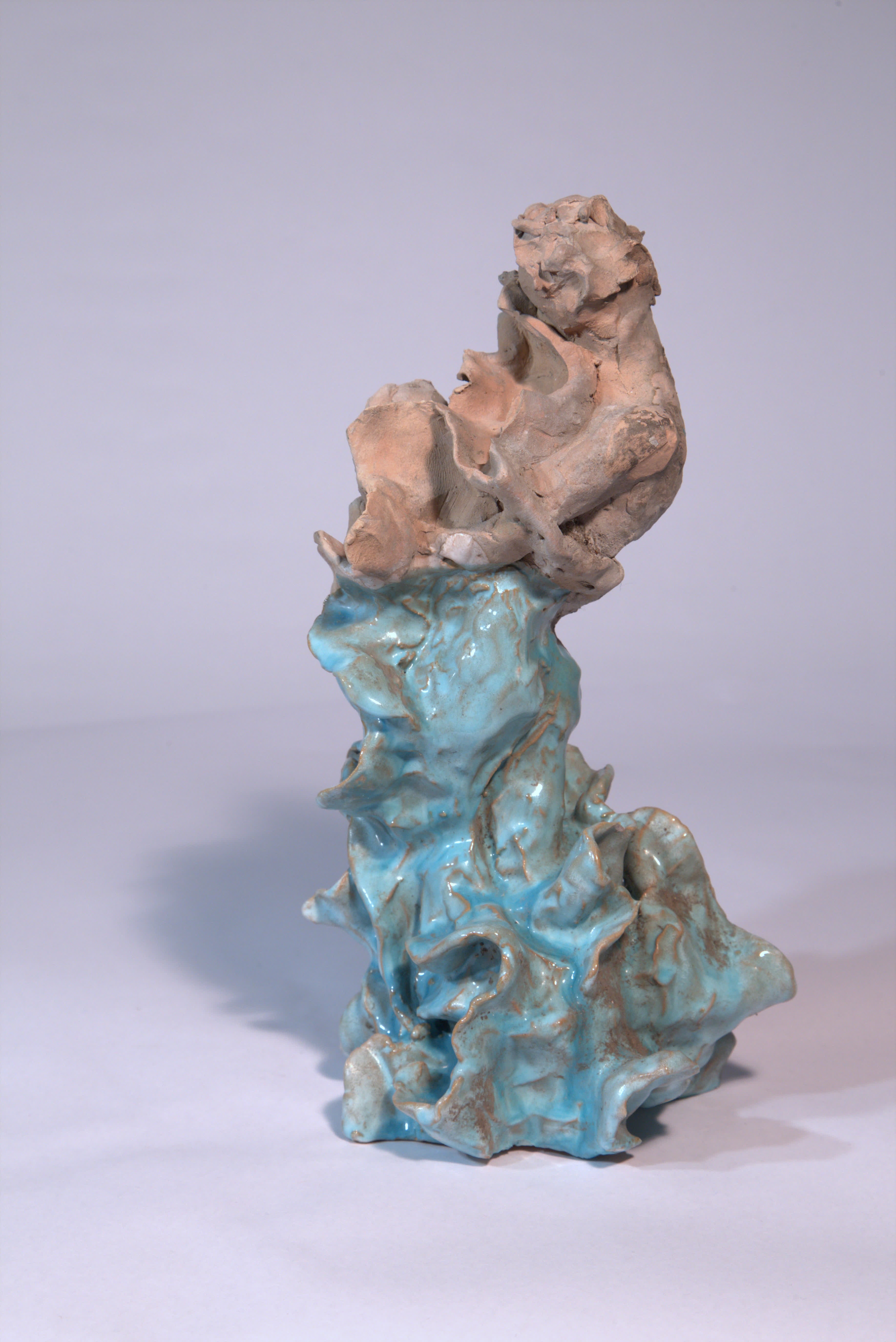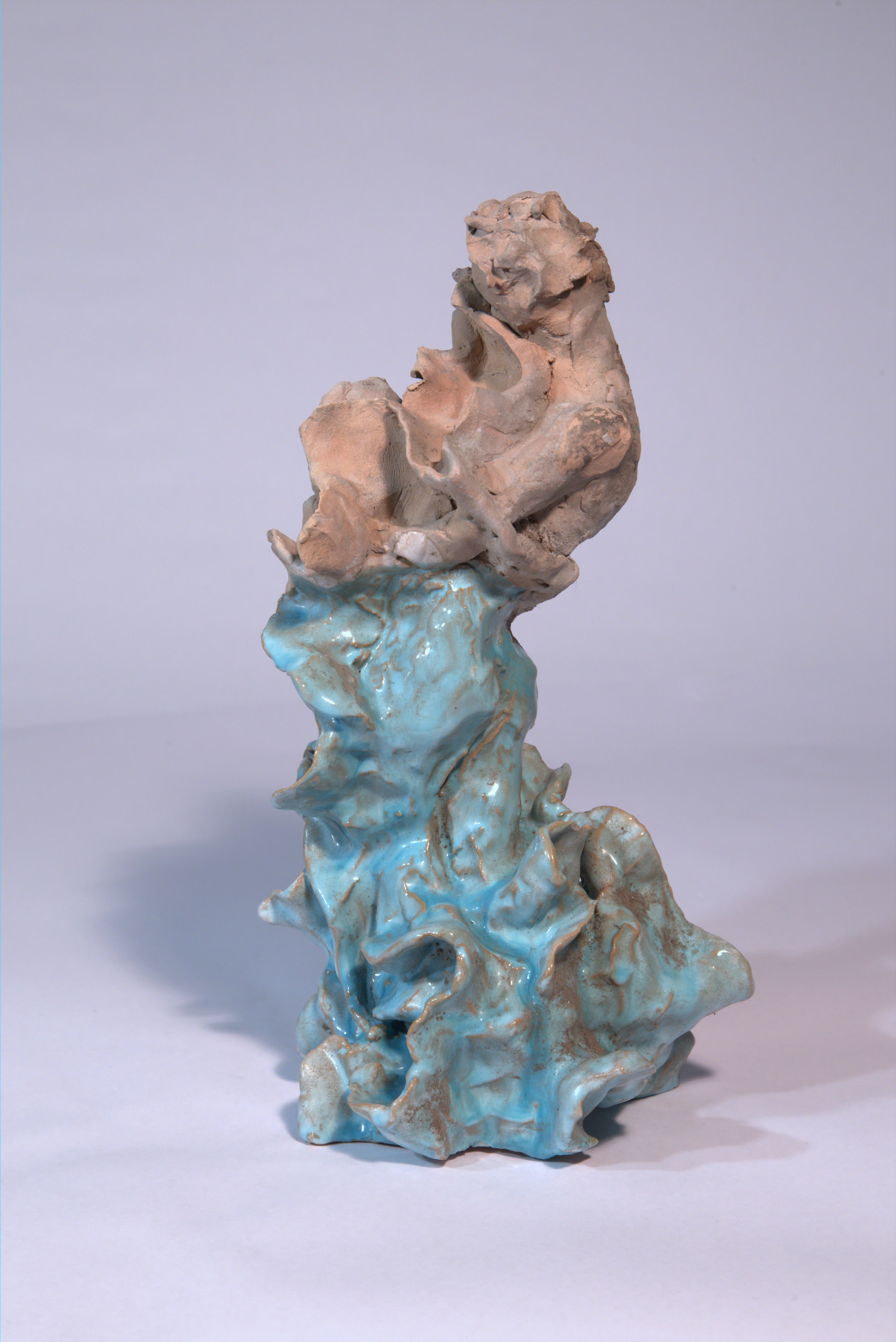 scultura raffigurante una figura (maschile?) che abbraccia una forma organica a volute e meandri tentacolari dalla quale emerge. Questa parte superiore antropomorfa è lasciata a nuda terracotta porosa; tutta quella inferiore è rivestita dallo smalto turchese.