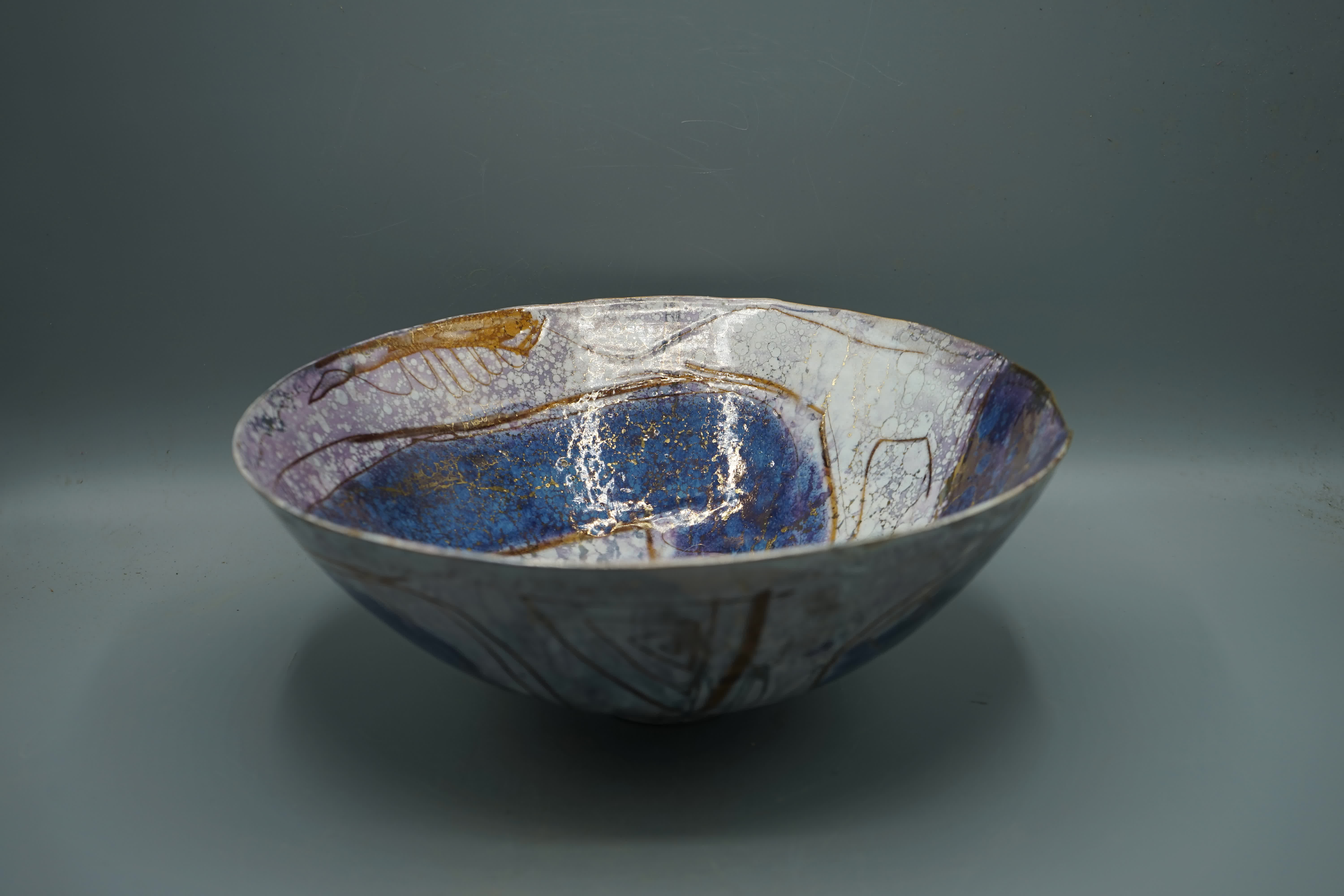 ciotola terracotta smaltata, decori oro 3°fuoco