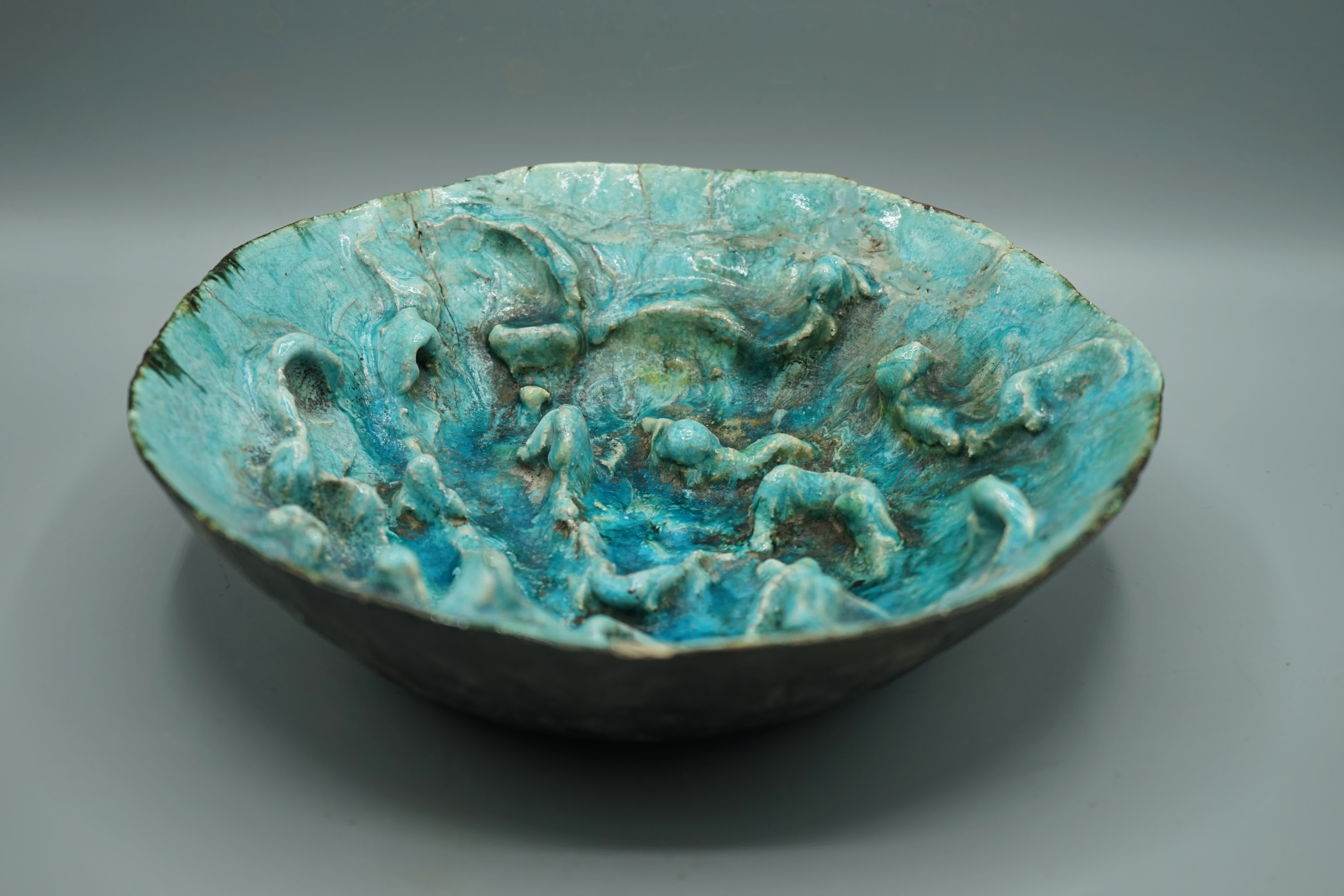 ciotola raku in semire smaltata con onde interne