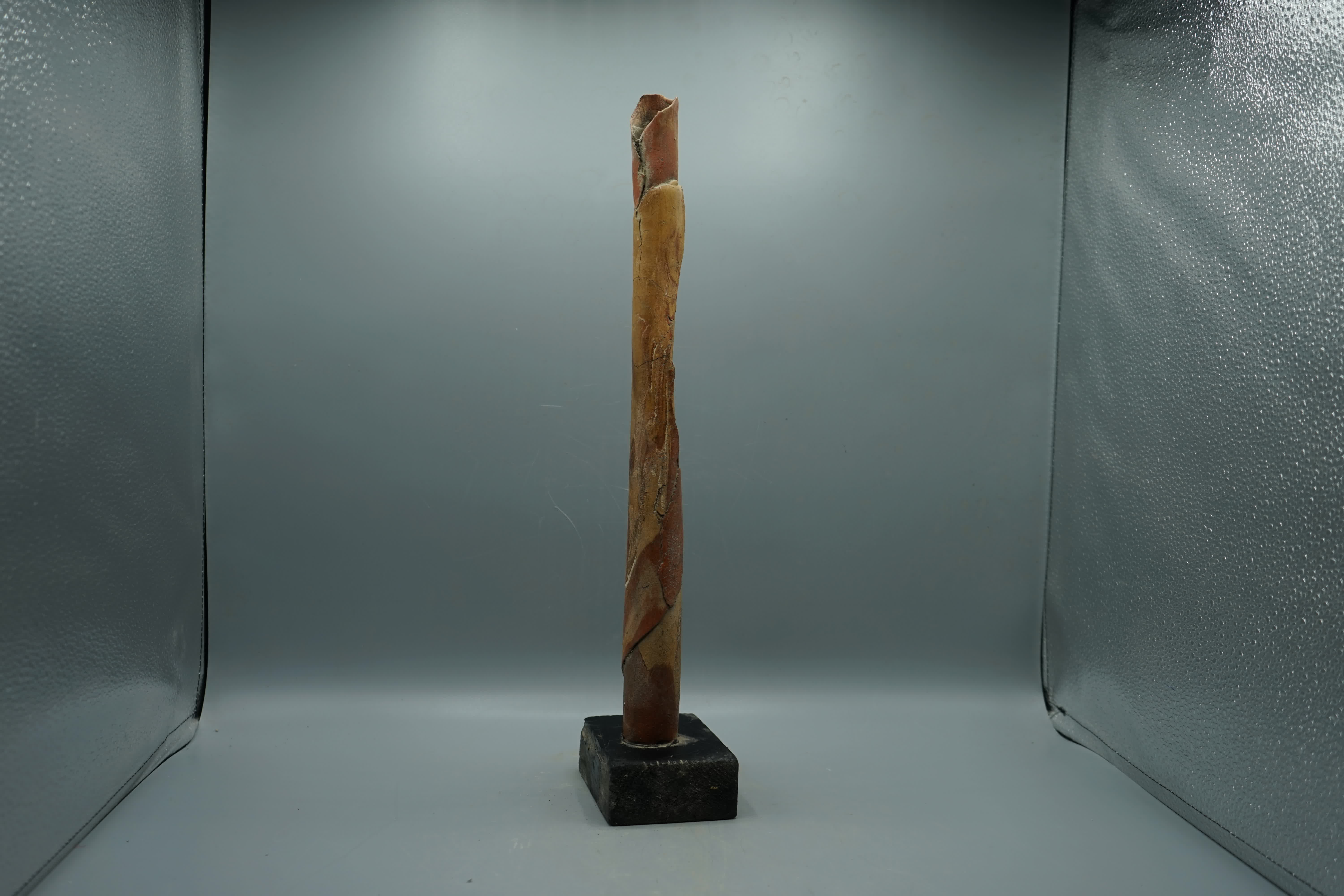 scultura rotolo semire ingobbiato, base legno