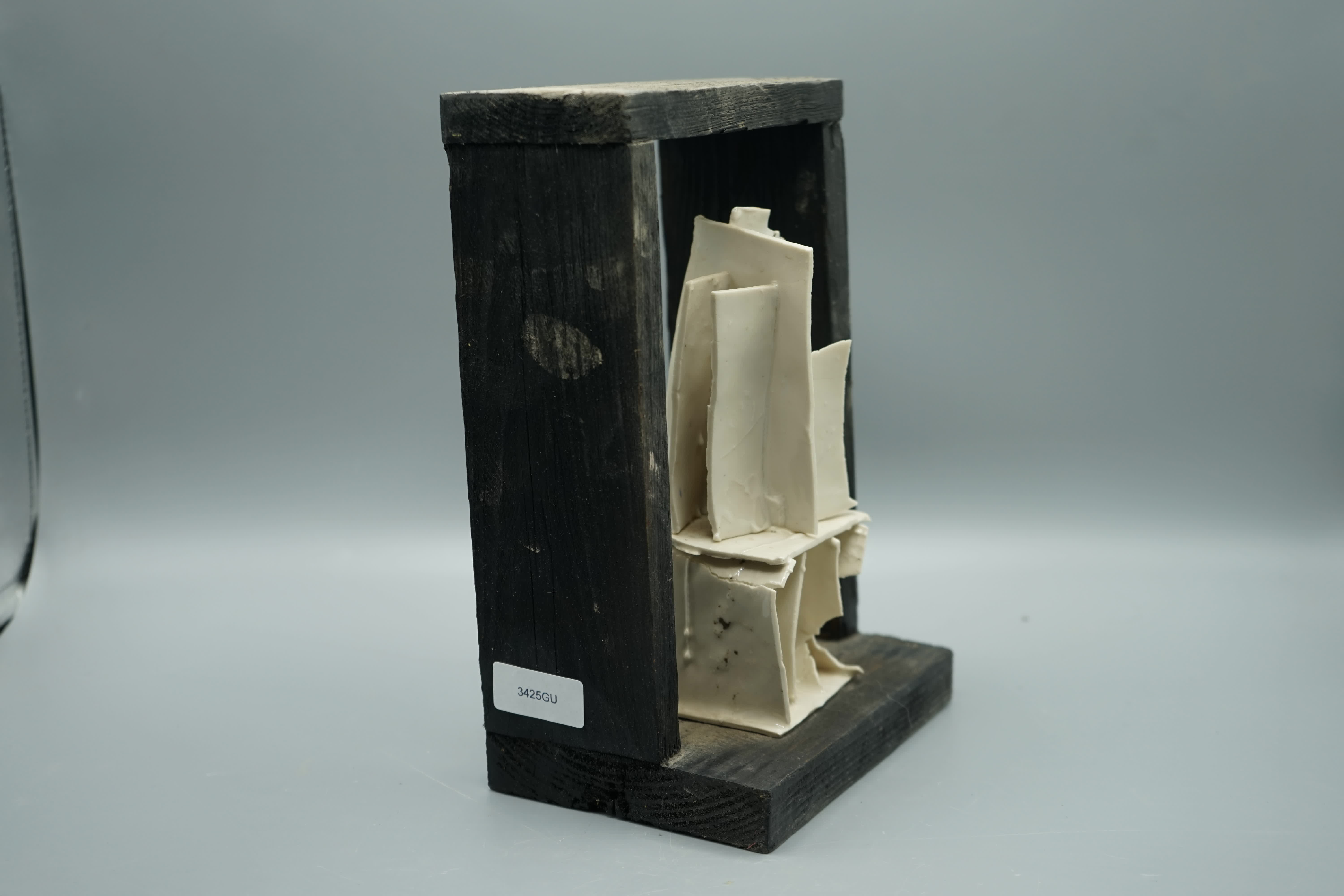scultura con fogli di semire smaltato con cornice legno