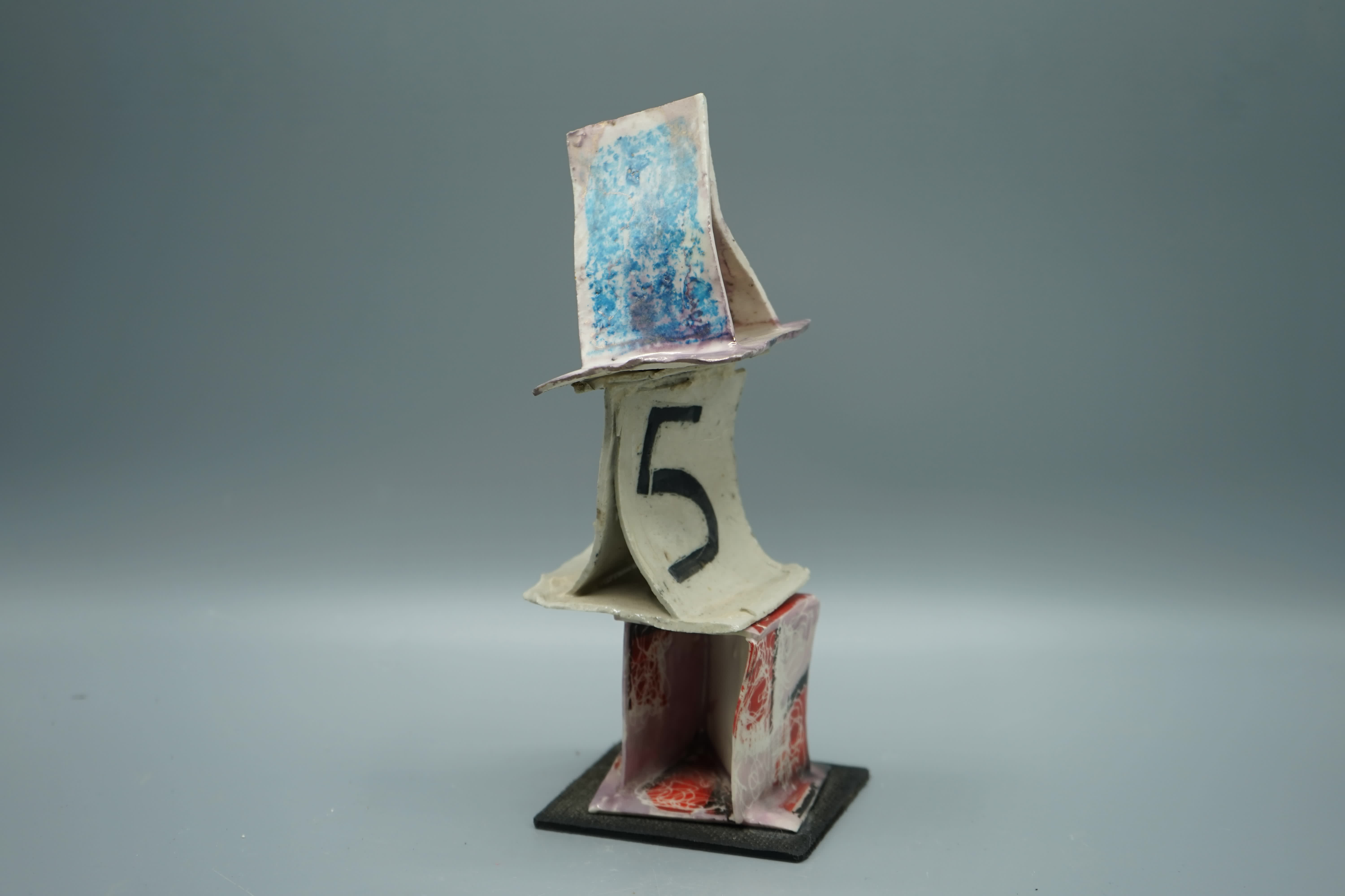 castello di carta in semire smaltato, parti decalcomania, 3 piani, base legno