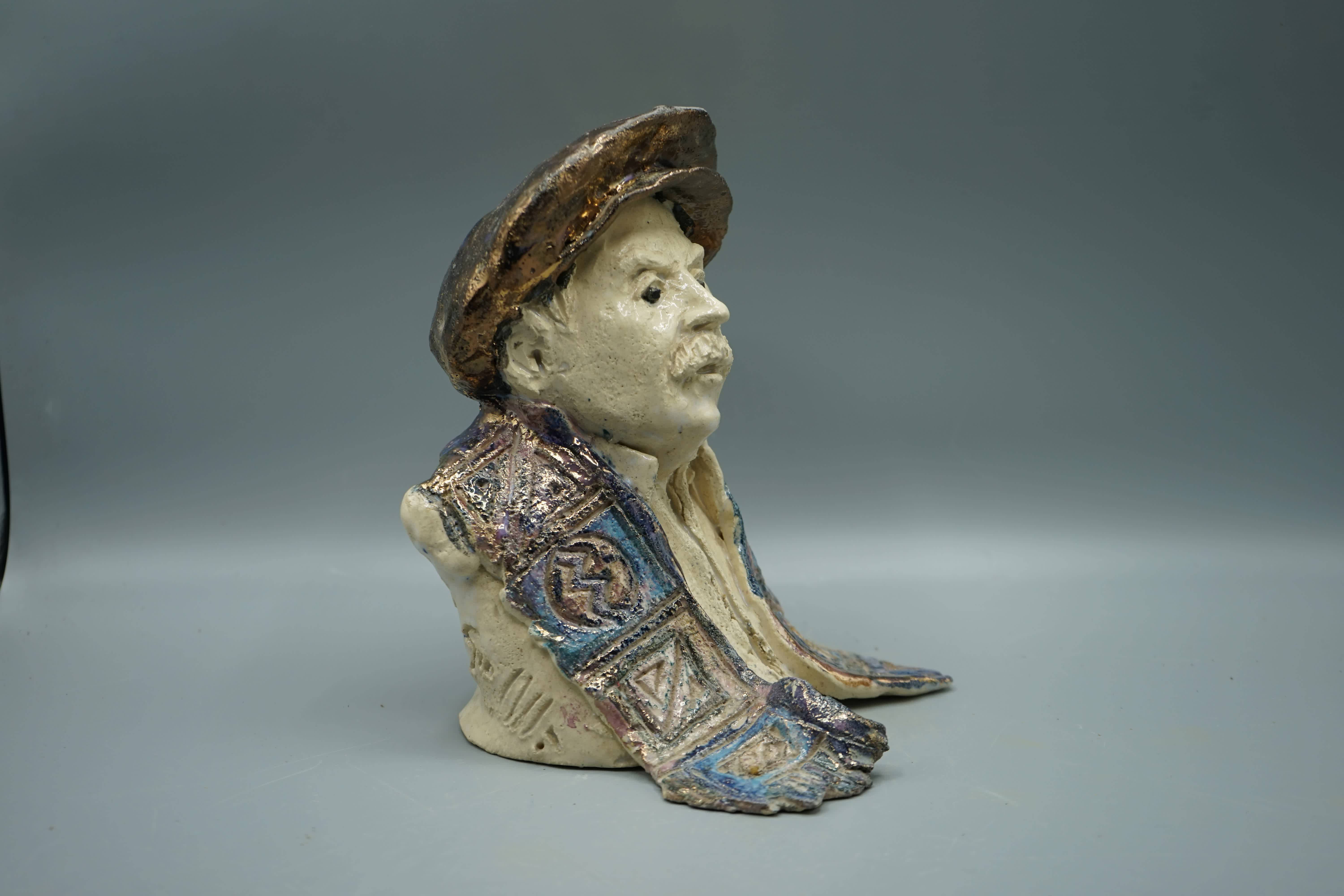 busto tonino guerra in semire smaltato,decori oro 3°fuoco