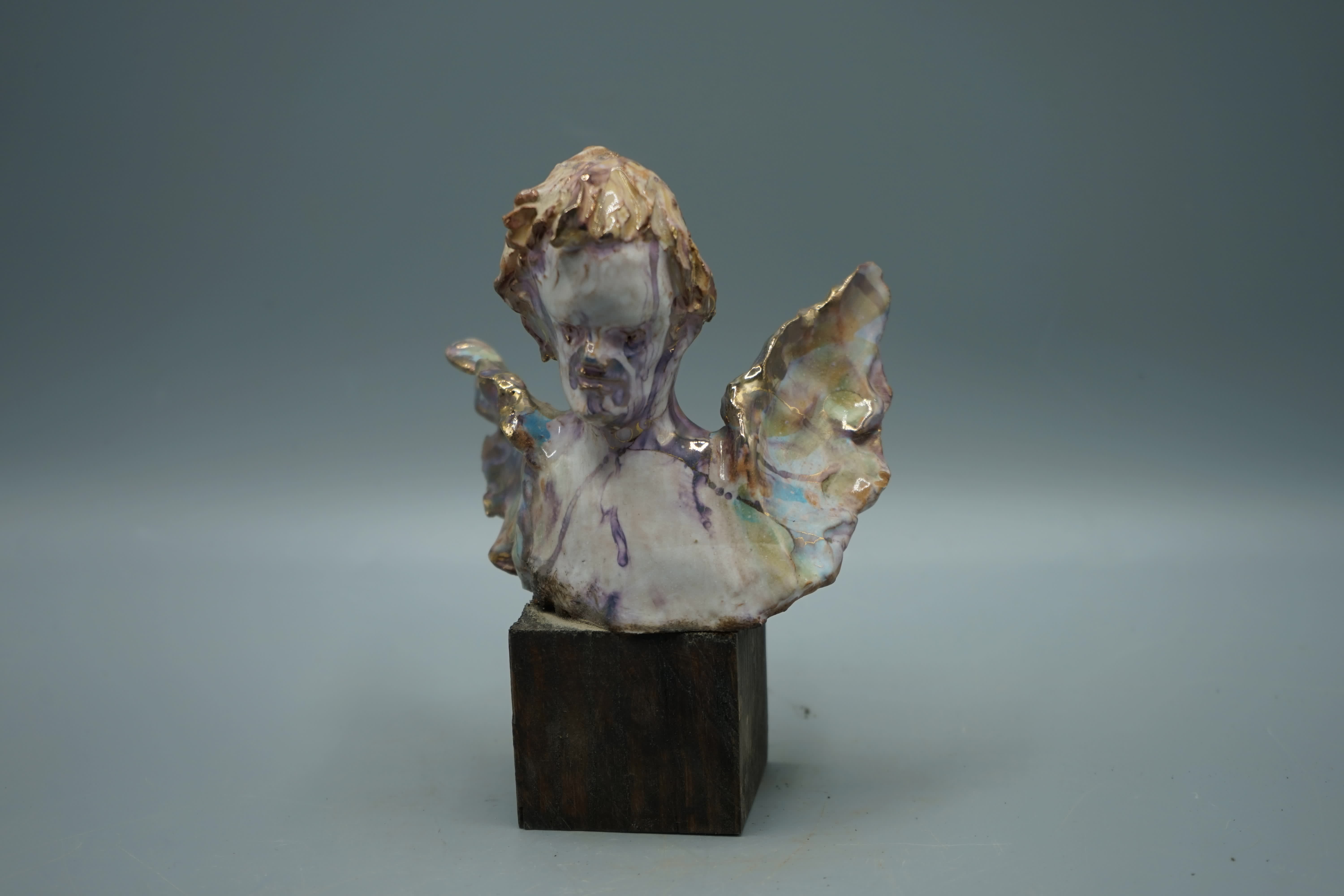 busto angerlo terracotta smaltato, decori oro 3°fuioco, base legno