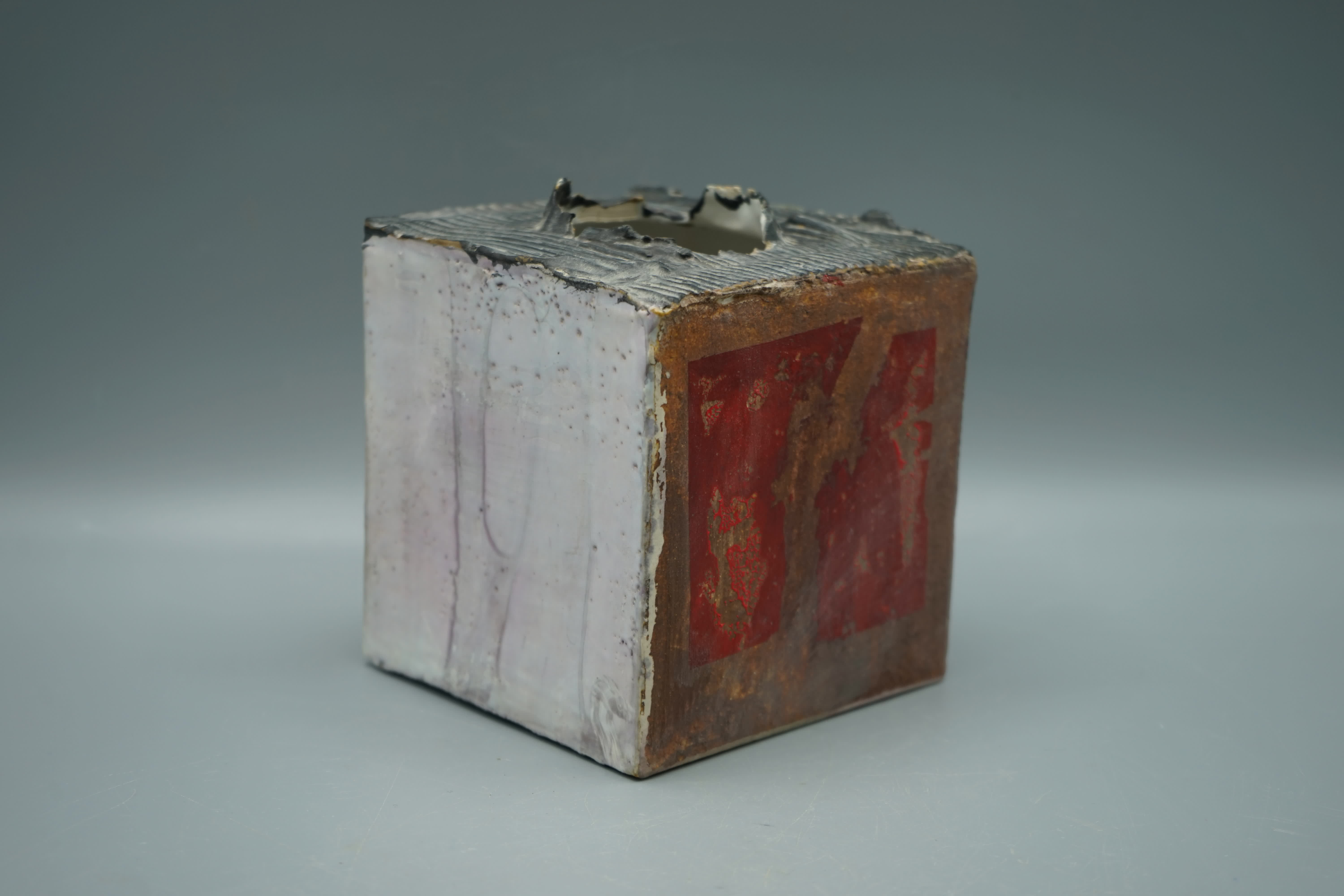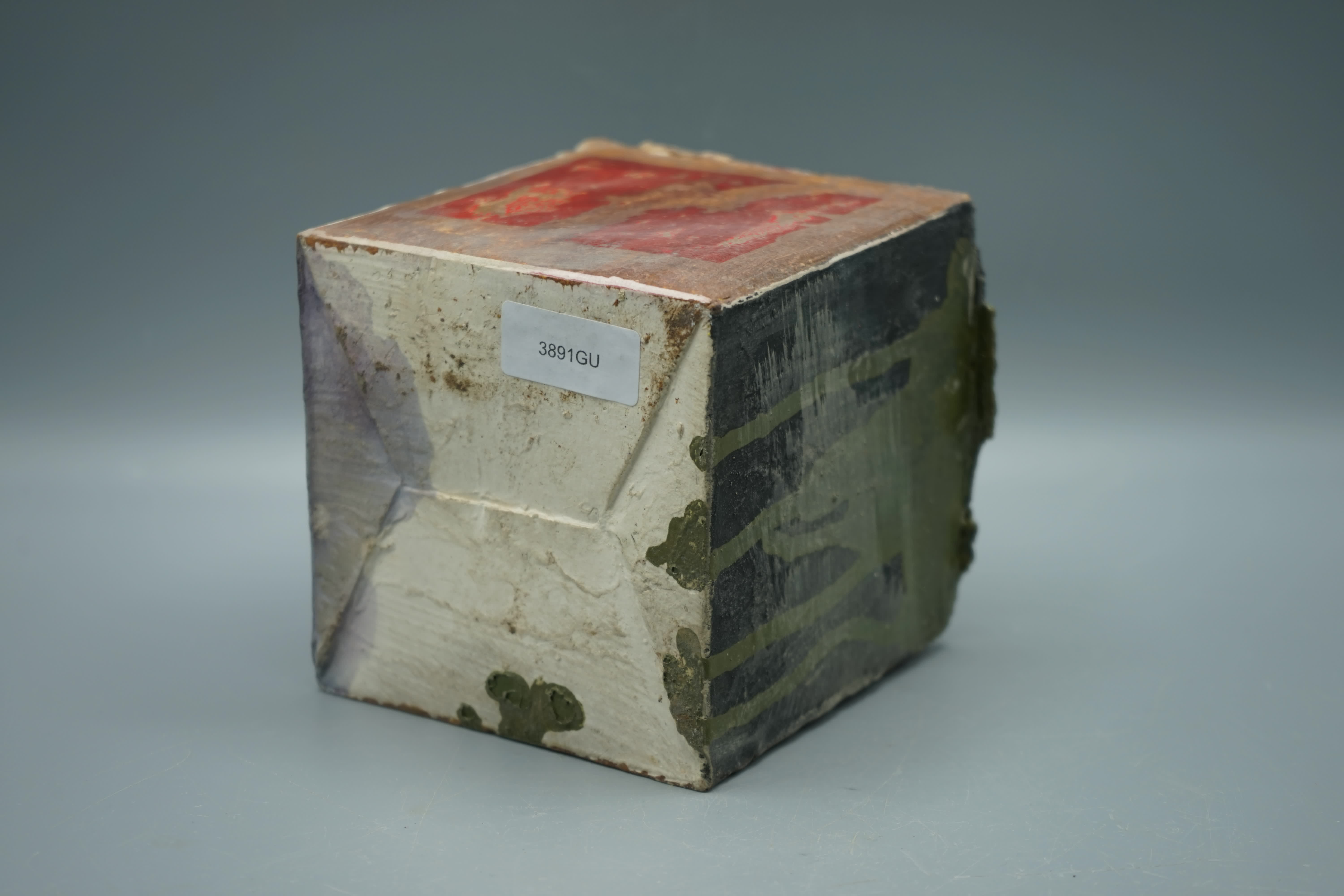 scatola terraglia ingobbiata, parzialmente smaltata, decorazione geometrica a decalco