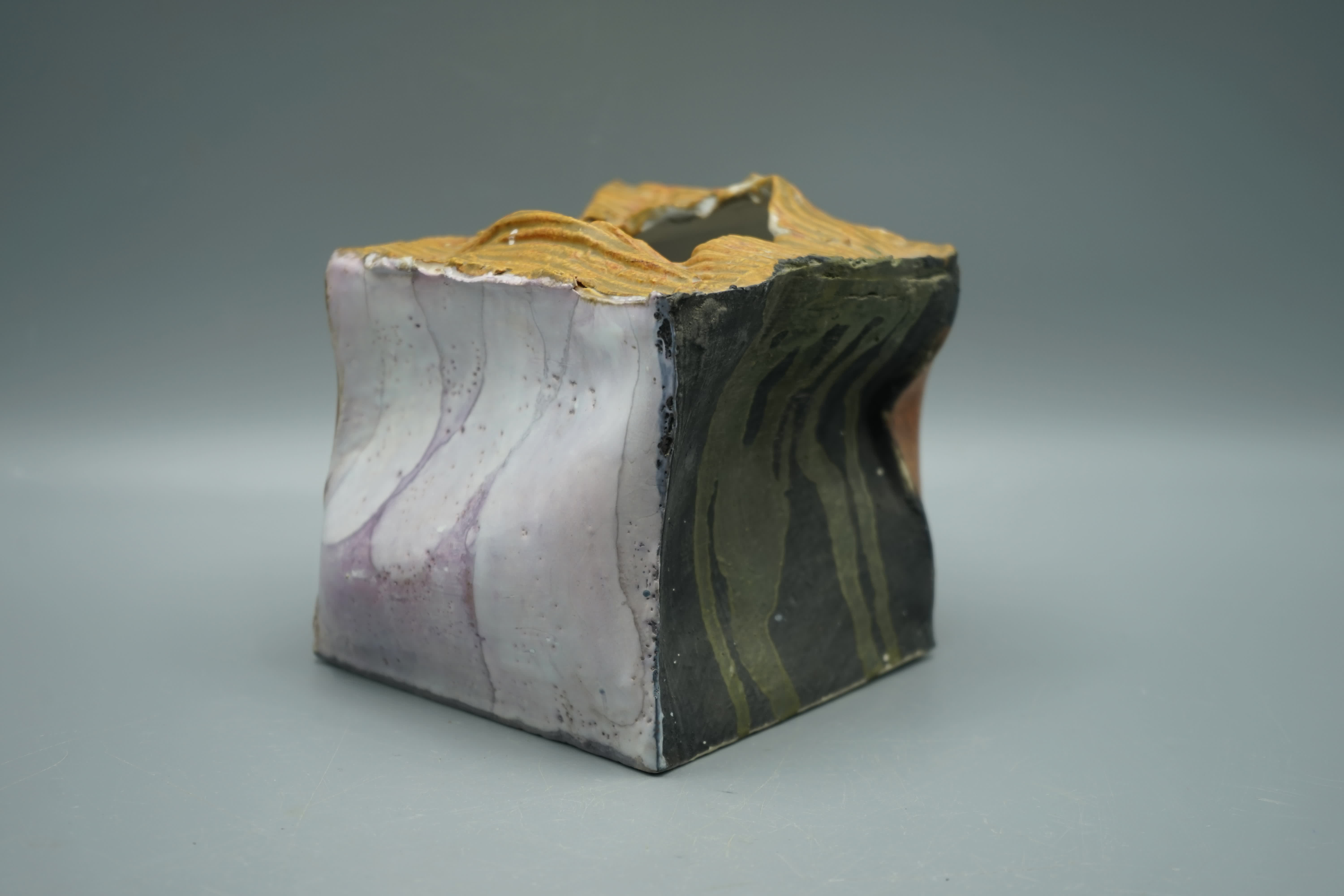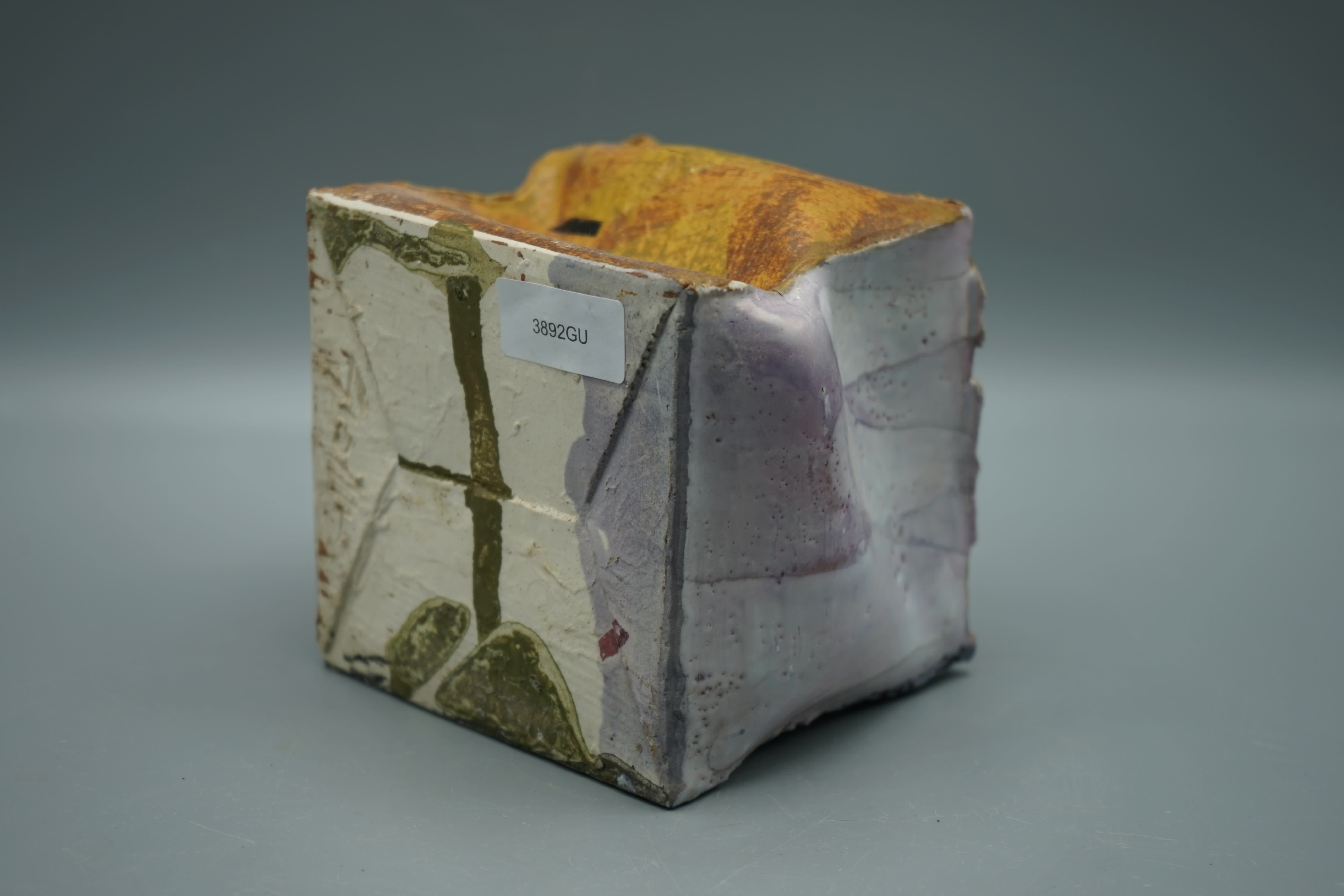scatola terraglia ingobbiata, parzialmente smaltata, decorazione geometrica a decalco