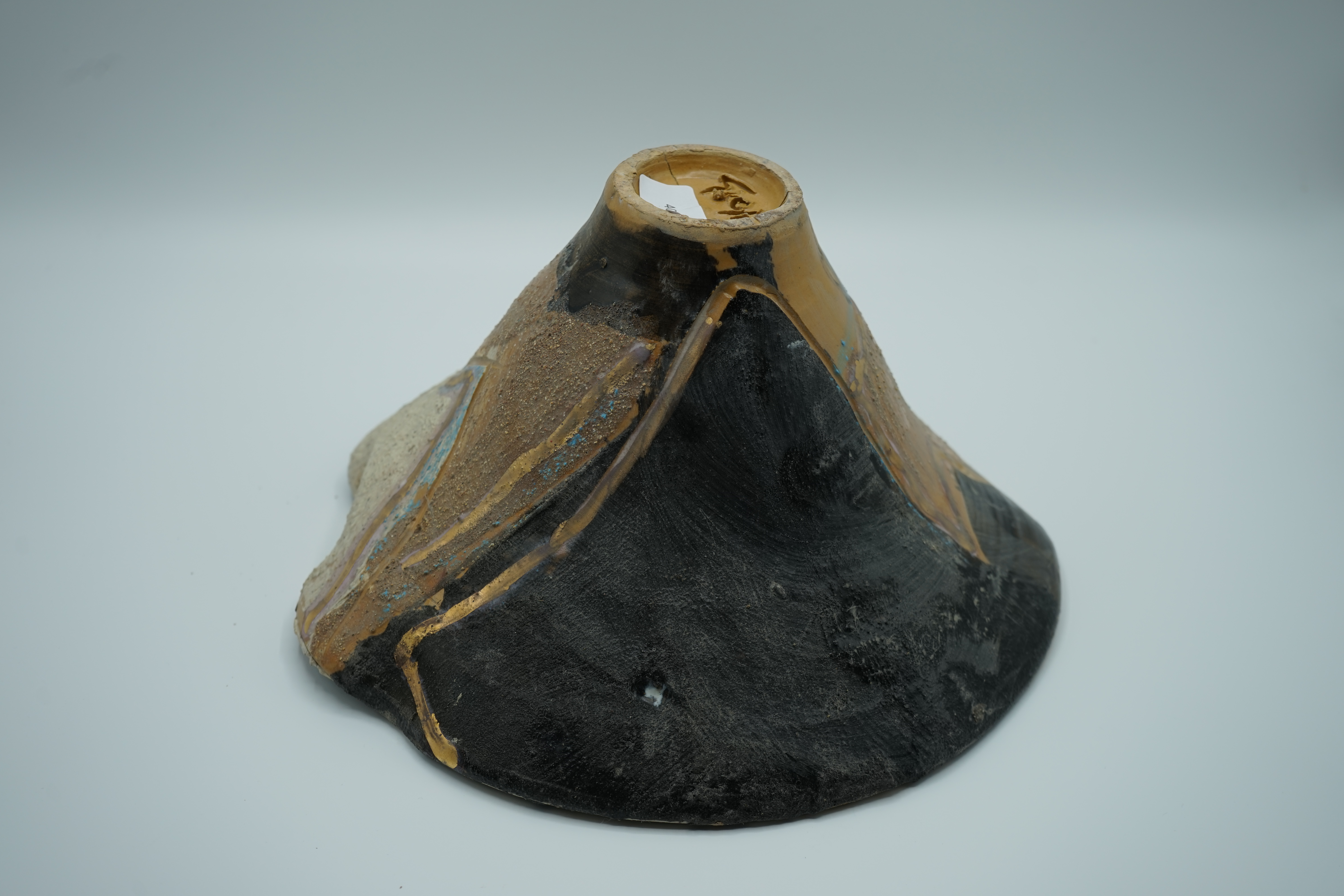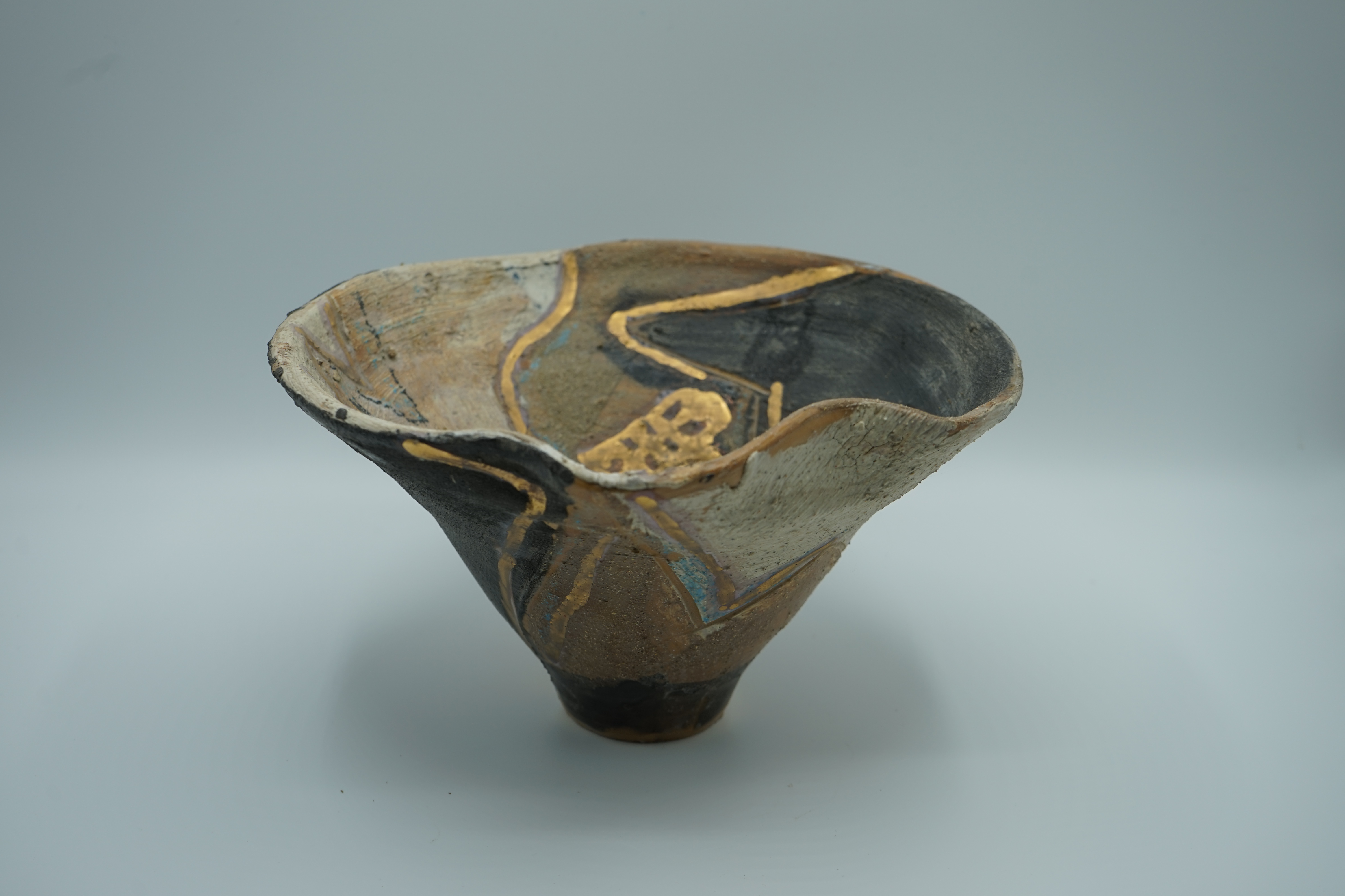 ciotola terracotta graffito, ingobbiato e smaltato, decori oro 3°fuoco