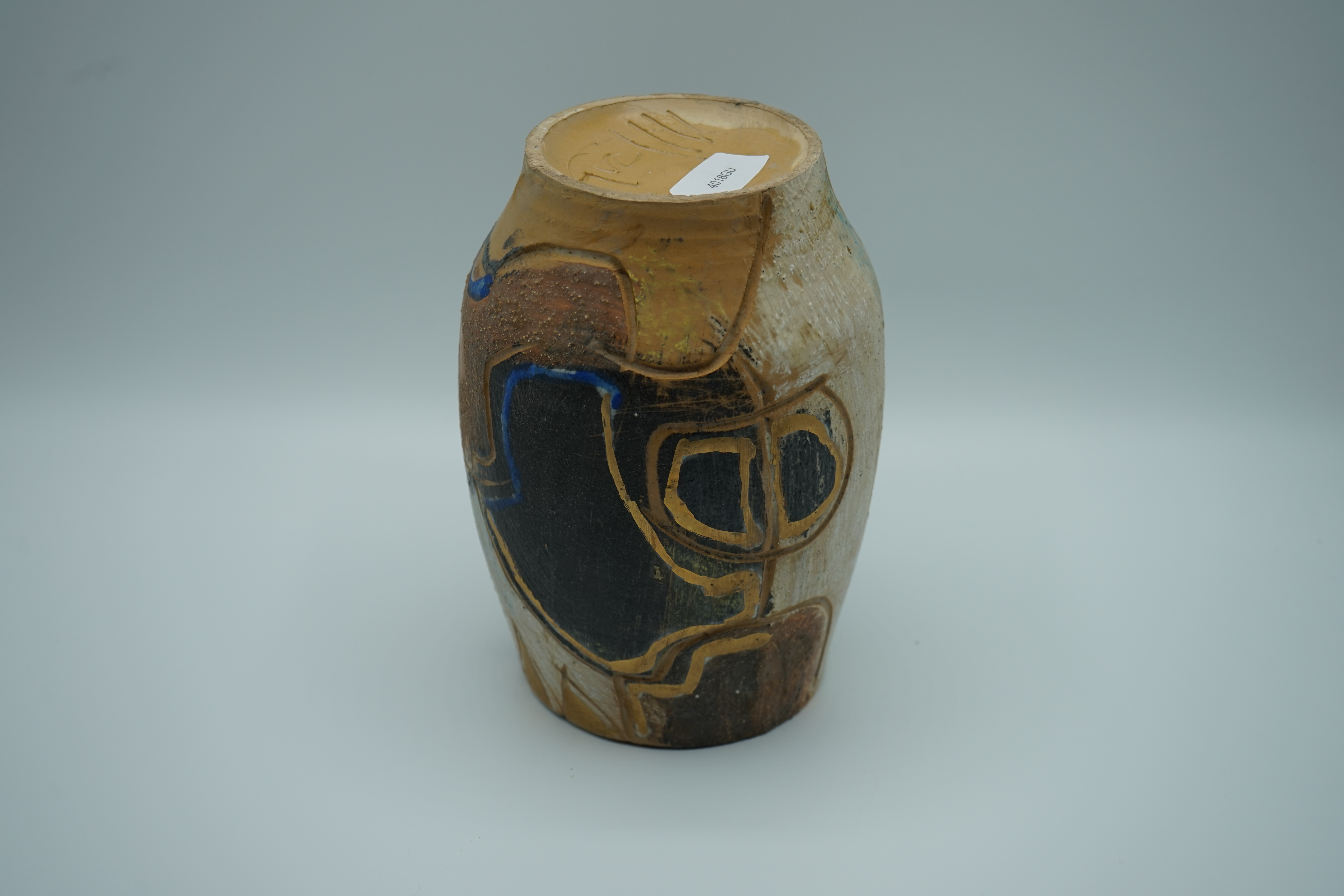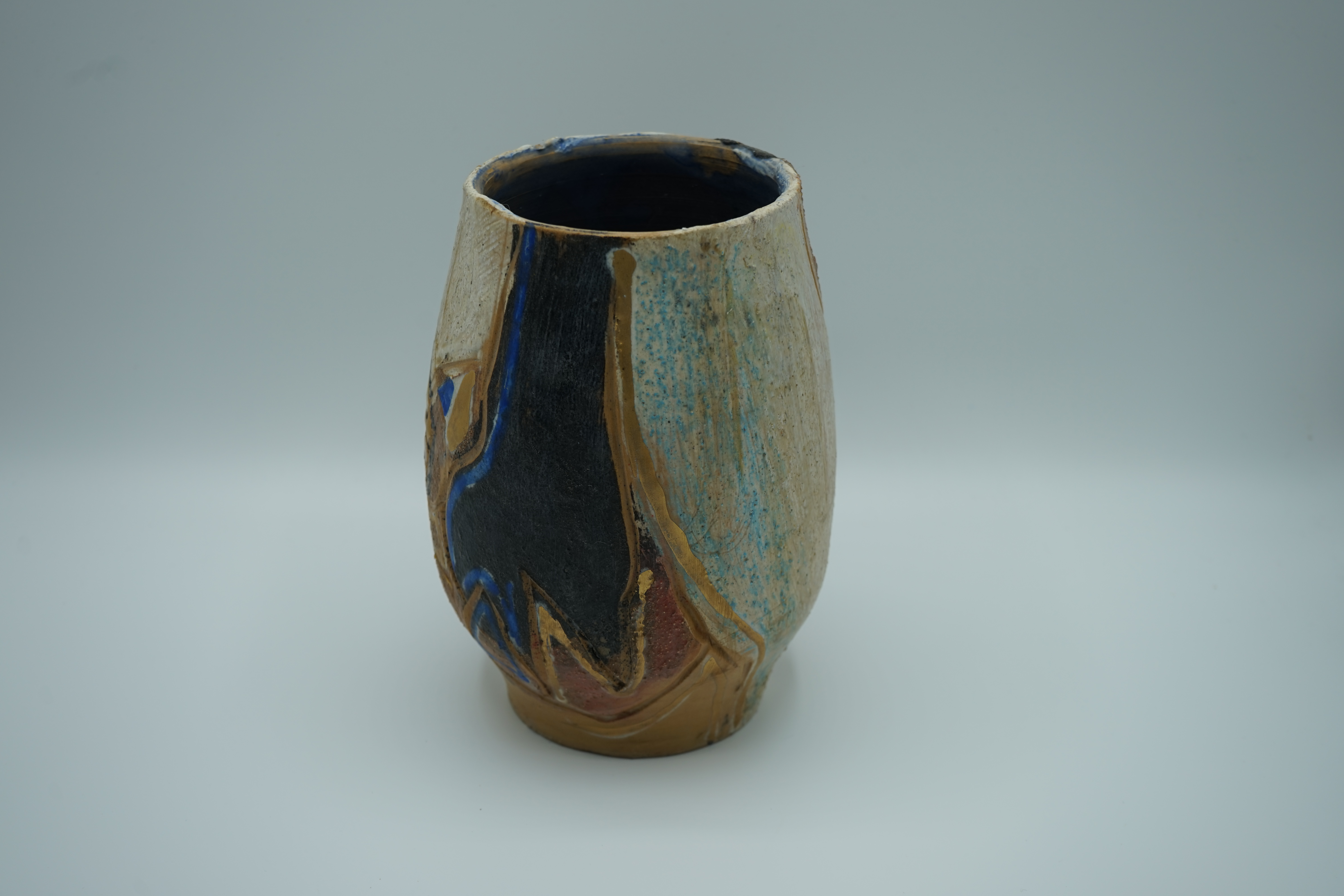 vaso terracotta graffito, ingobbiato e smaltato, decori oro 3°fuoco