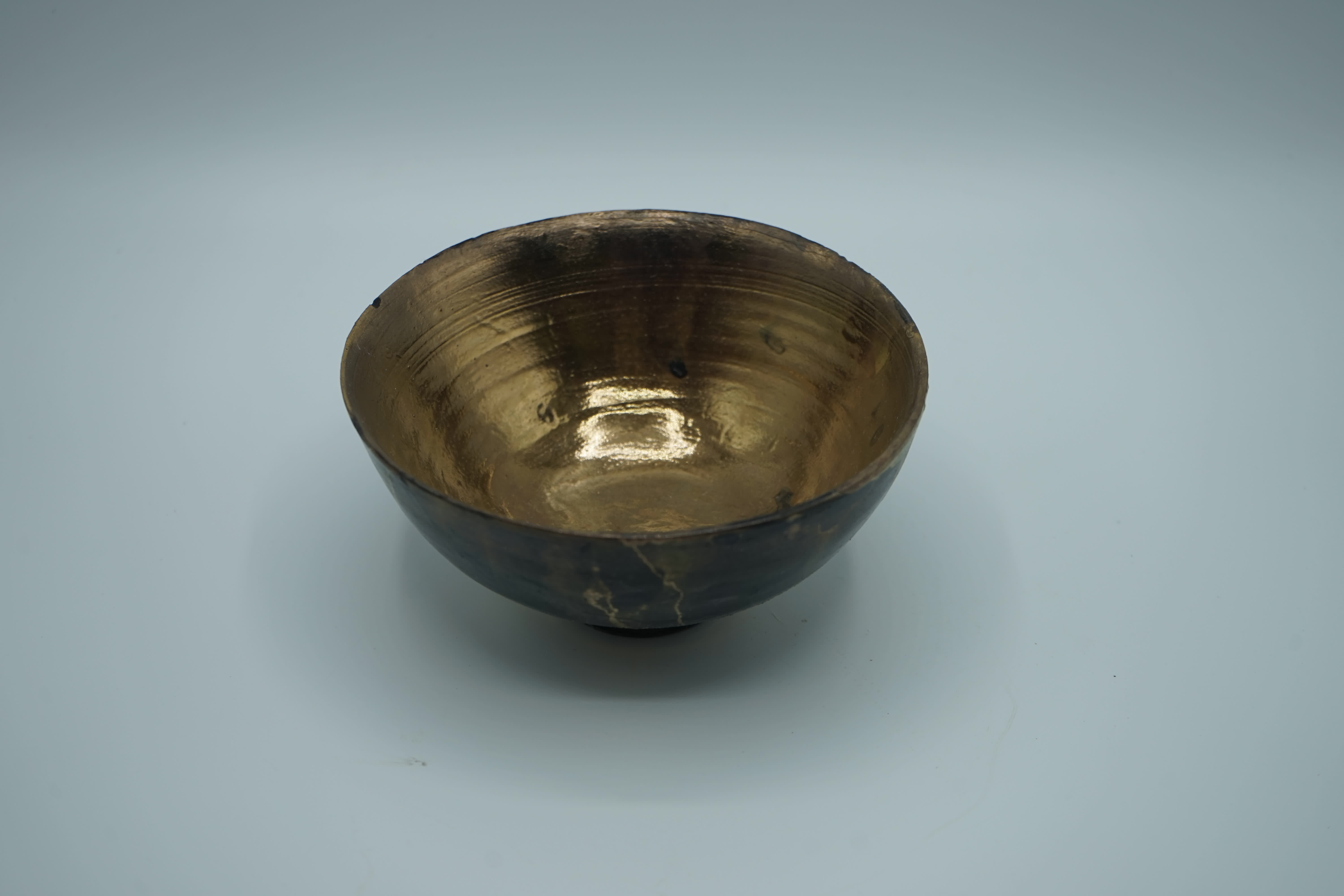 ciotola terracotta smaltata, decorazioni oro 3°fuoco