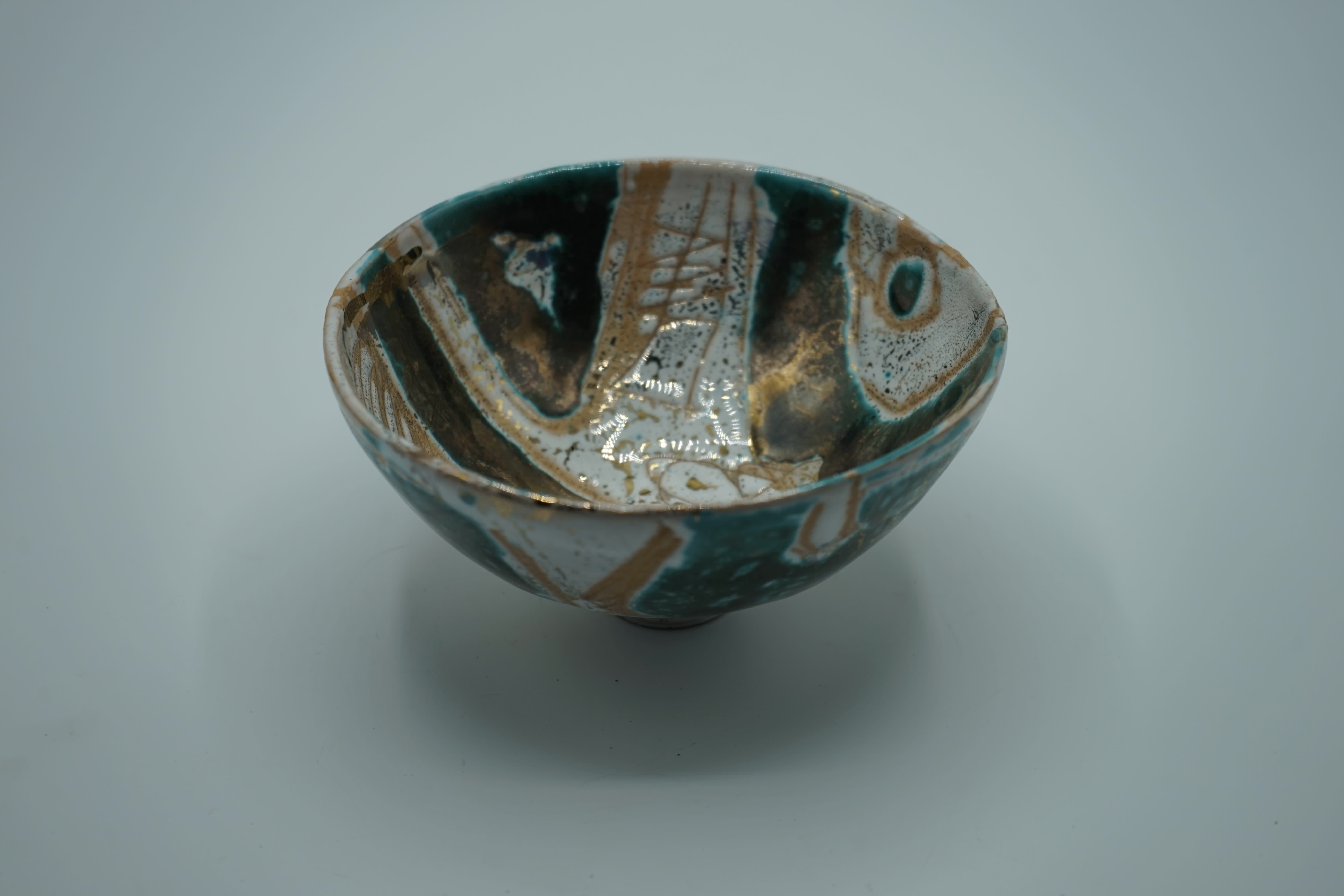 ciotola terracotta smaltata e graffita, decori oro 3°fuoco