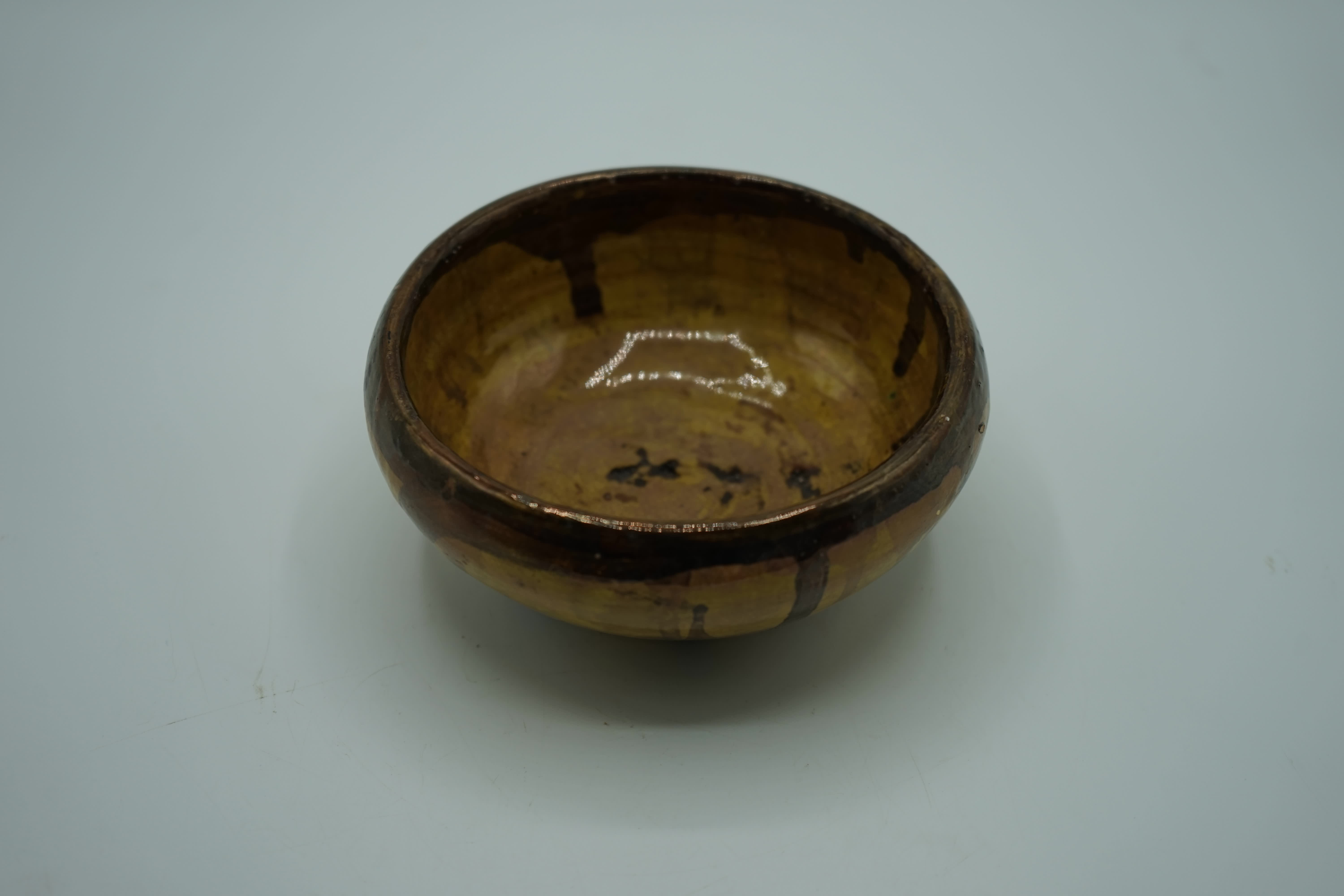 ciotola terracotta smaltata, dorature a 3°fuoco
