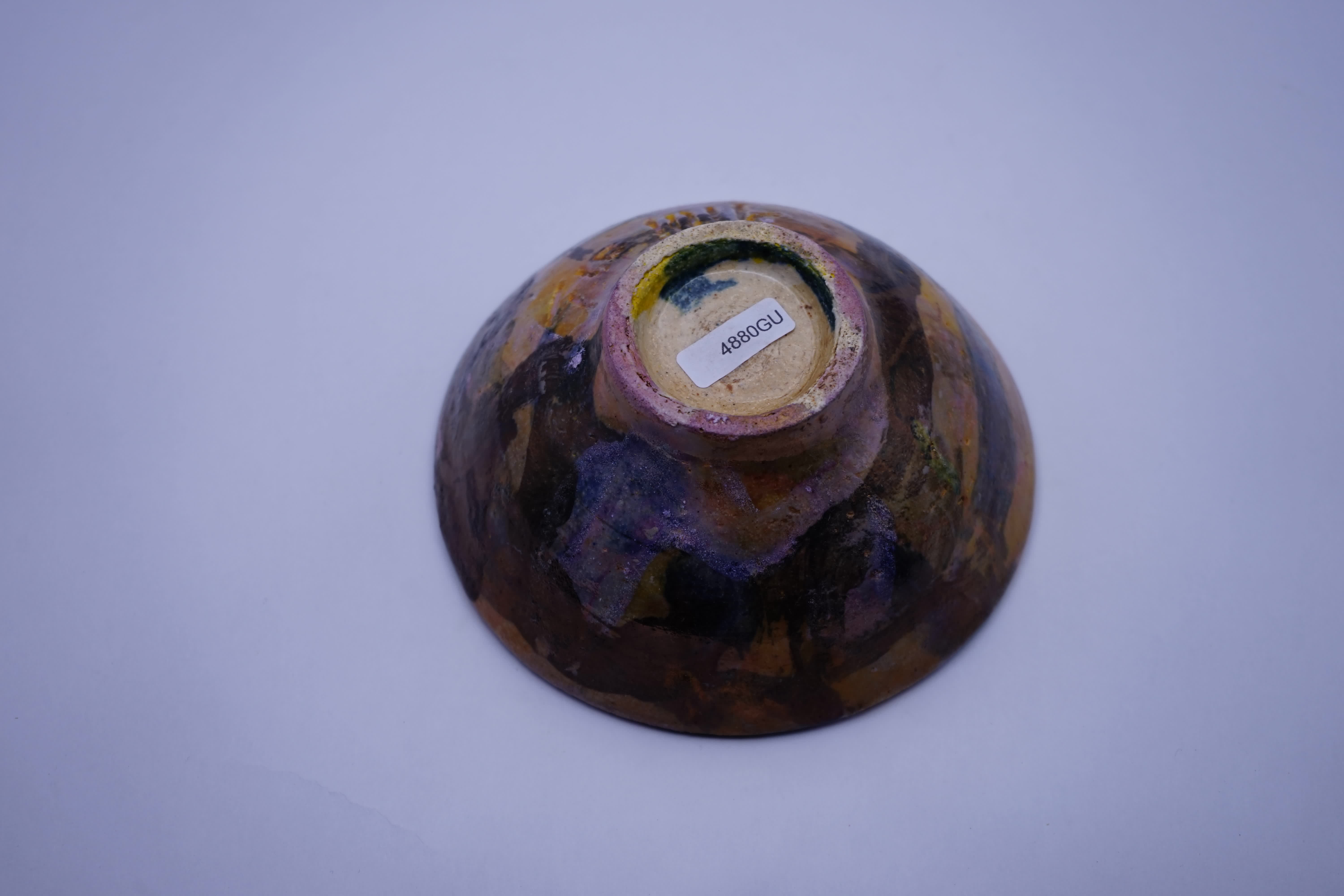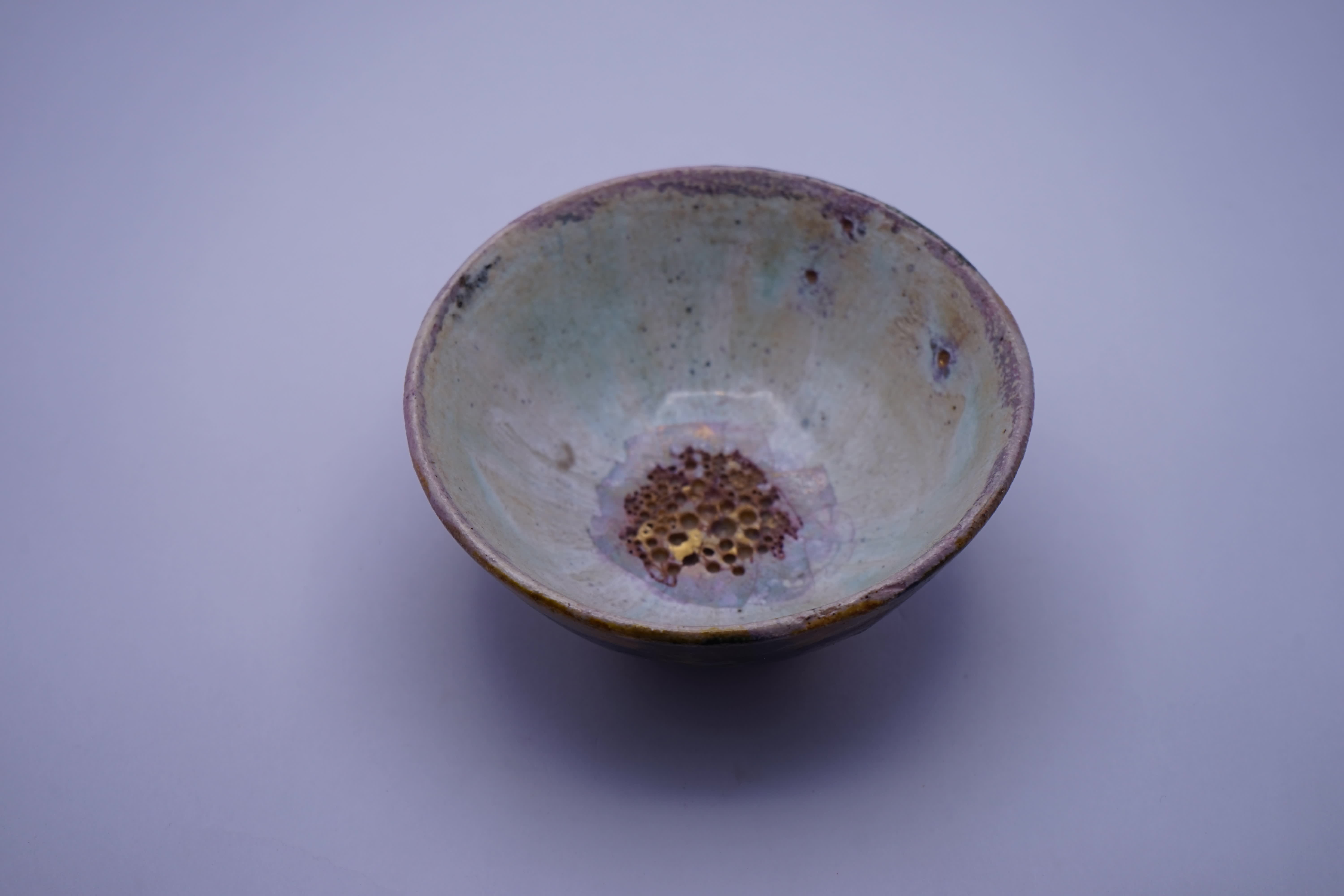 ciotola terracotta smaltata, dorature a 3°fuoco