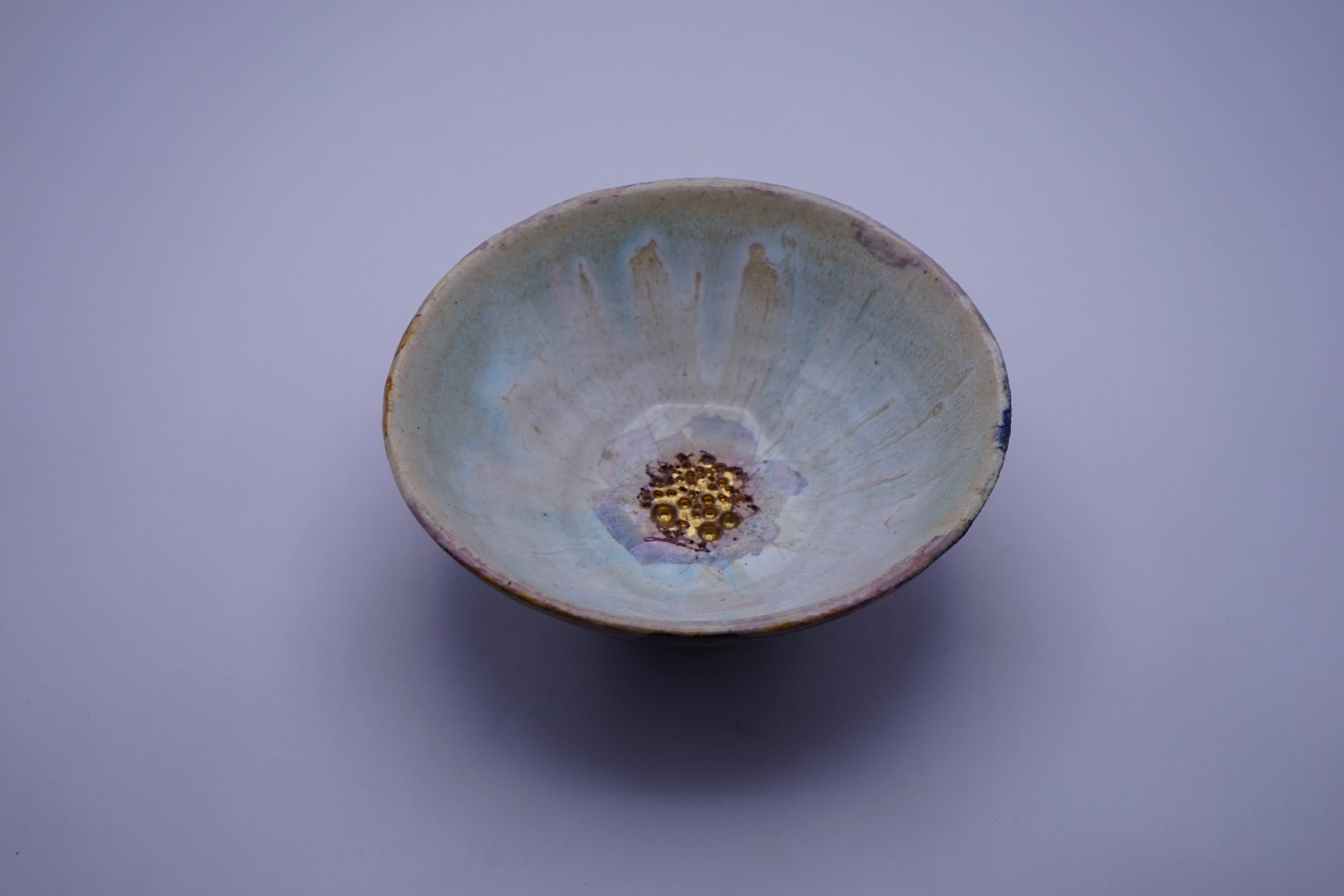 ciotola terracotta smaltata, dorature a 3°fuoco