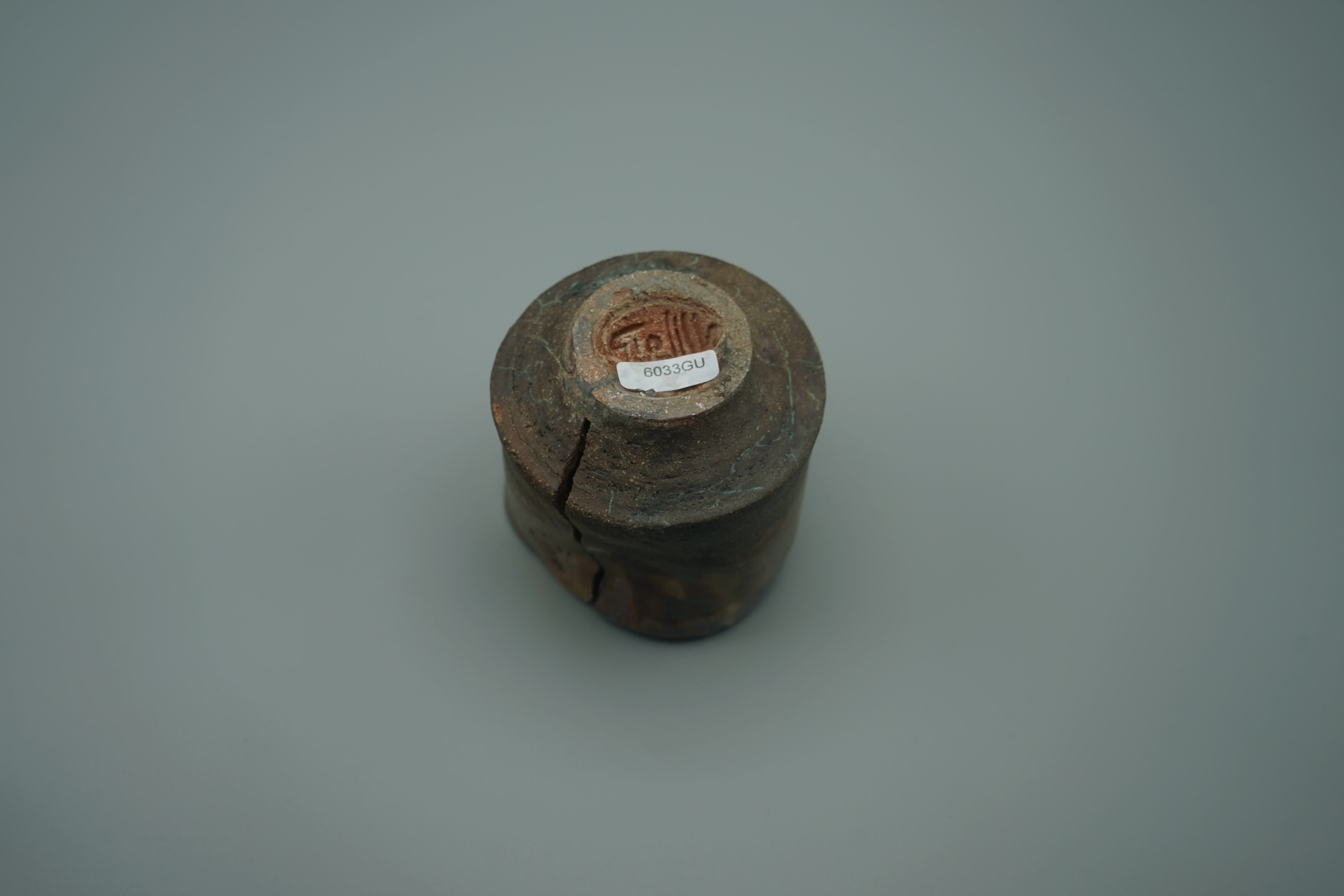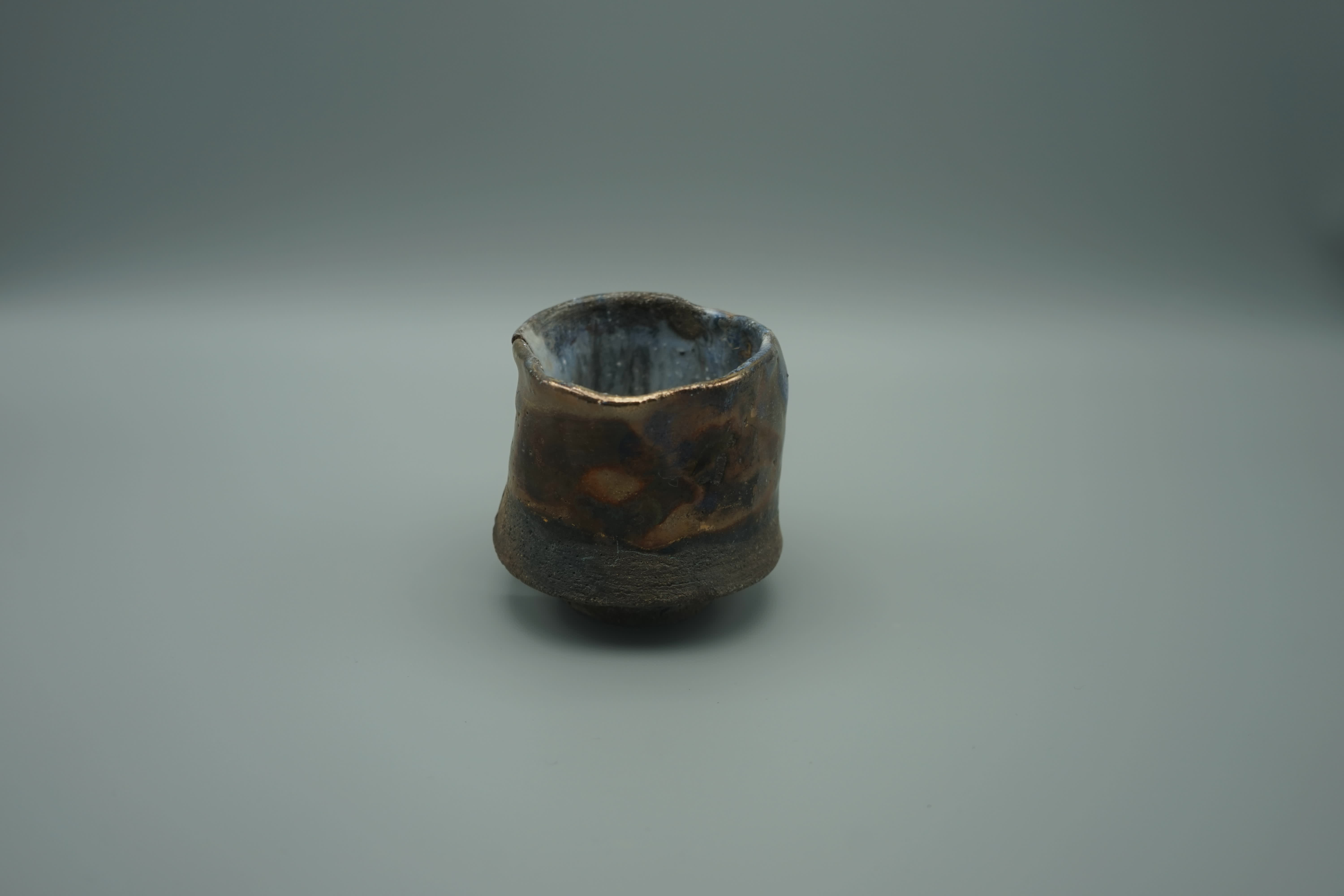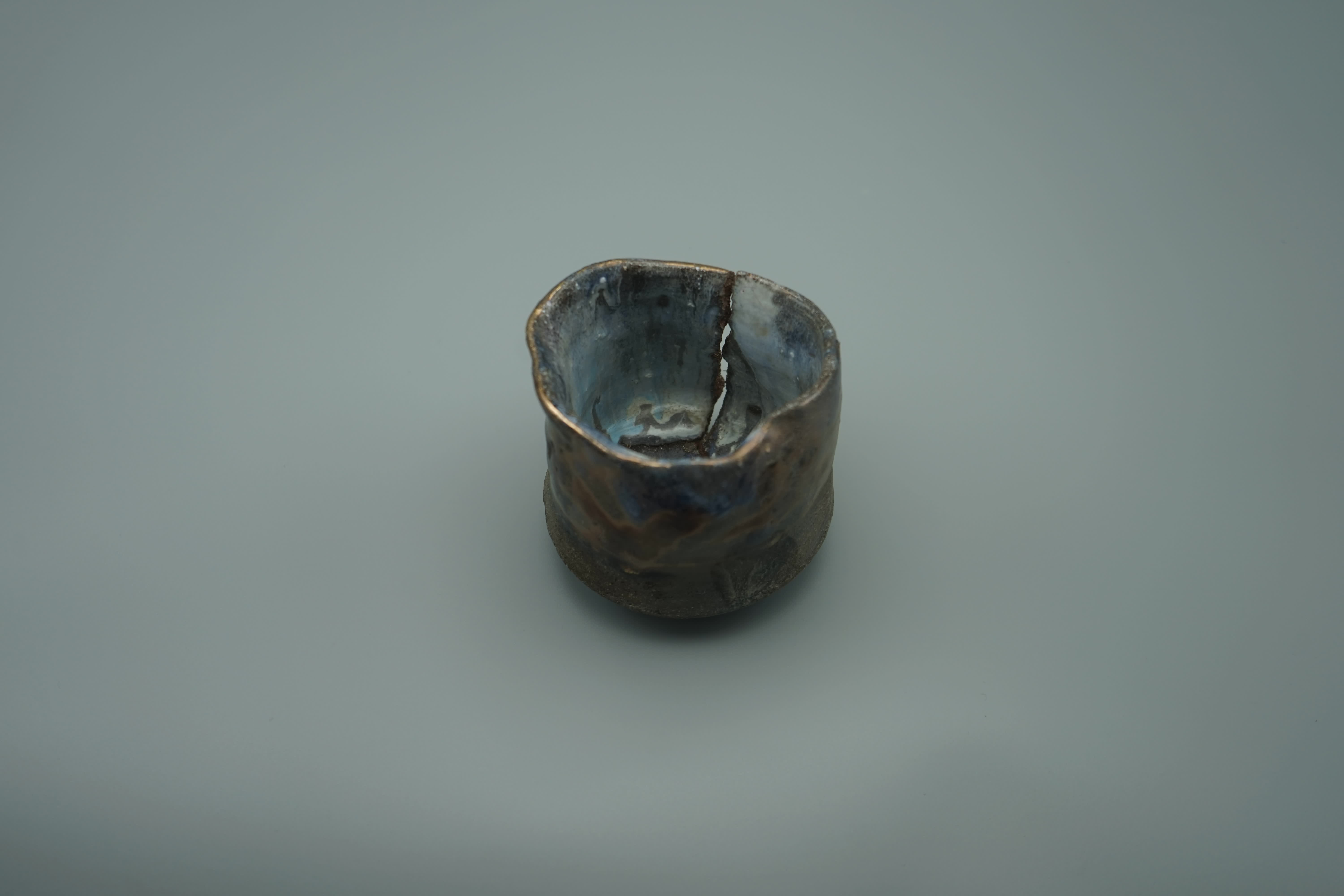 Ciotola sformata semirefrattario, esterno ingobbiato e parzialmente smaltato con decorazioni oro 3°fuoco, interno smaltato con colature policrome