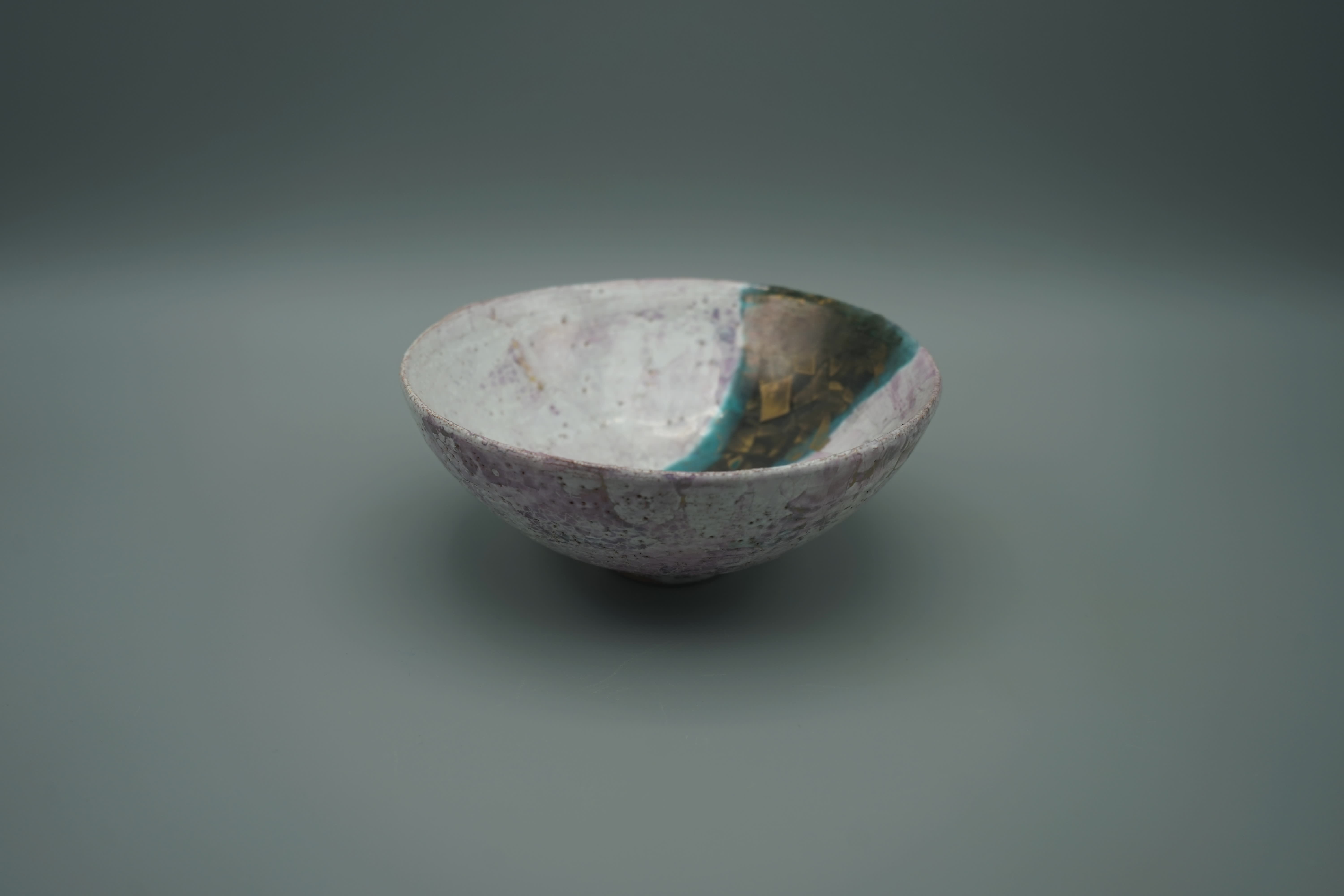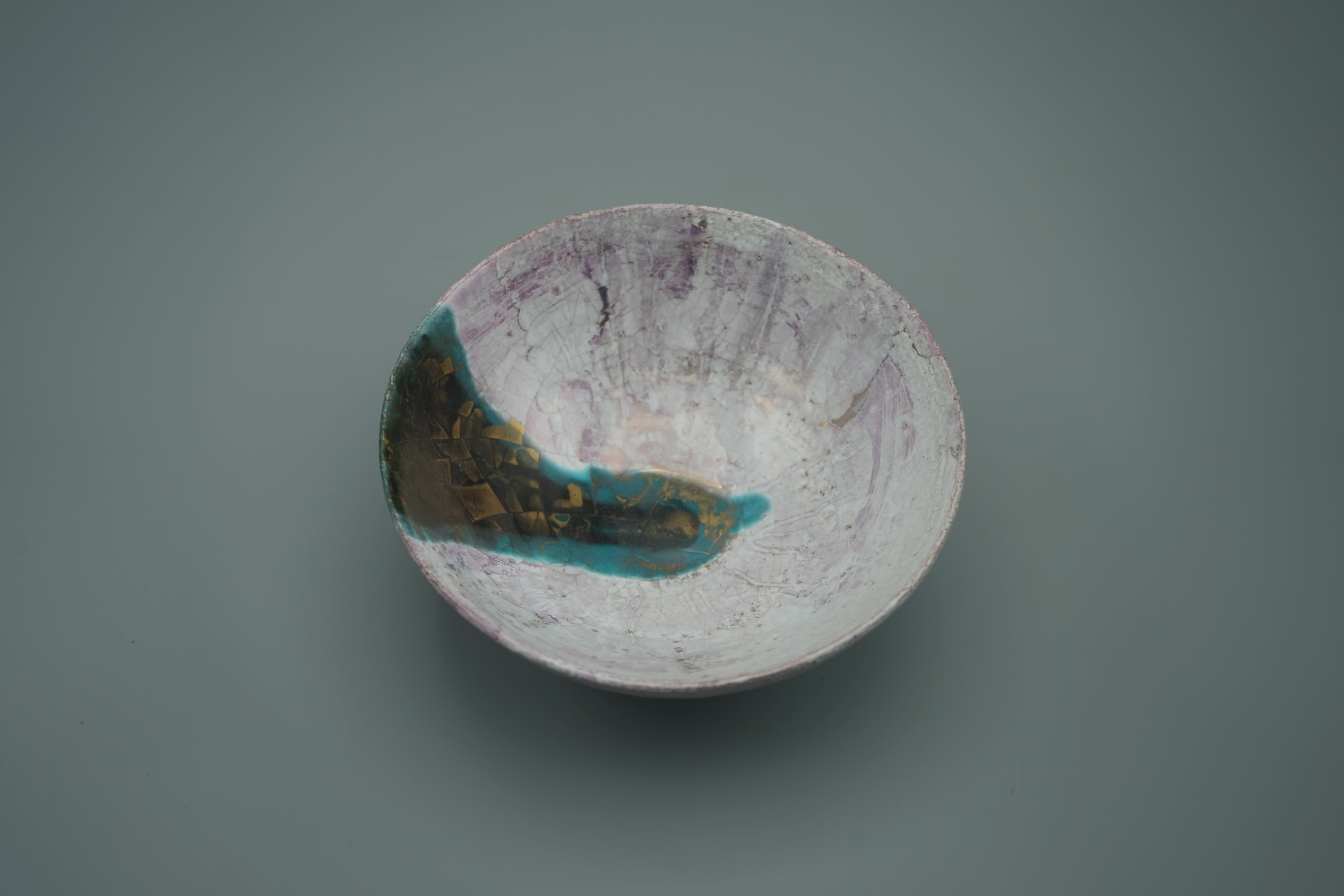 Ciotola semirefrattario smaltato, decorazioni oro 3°fuoco