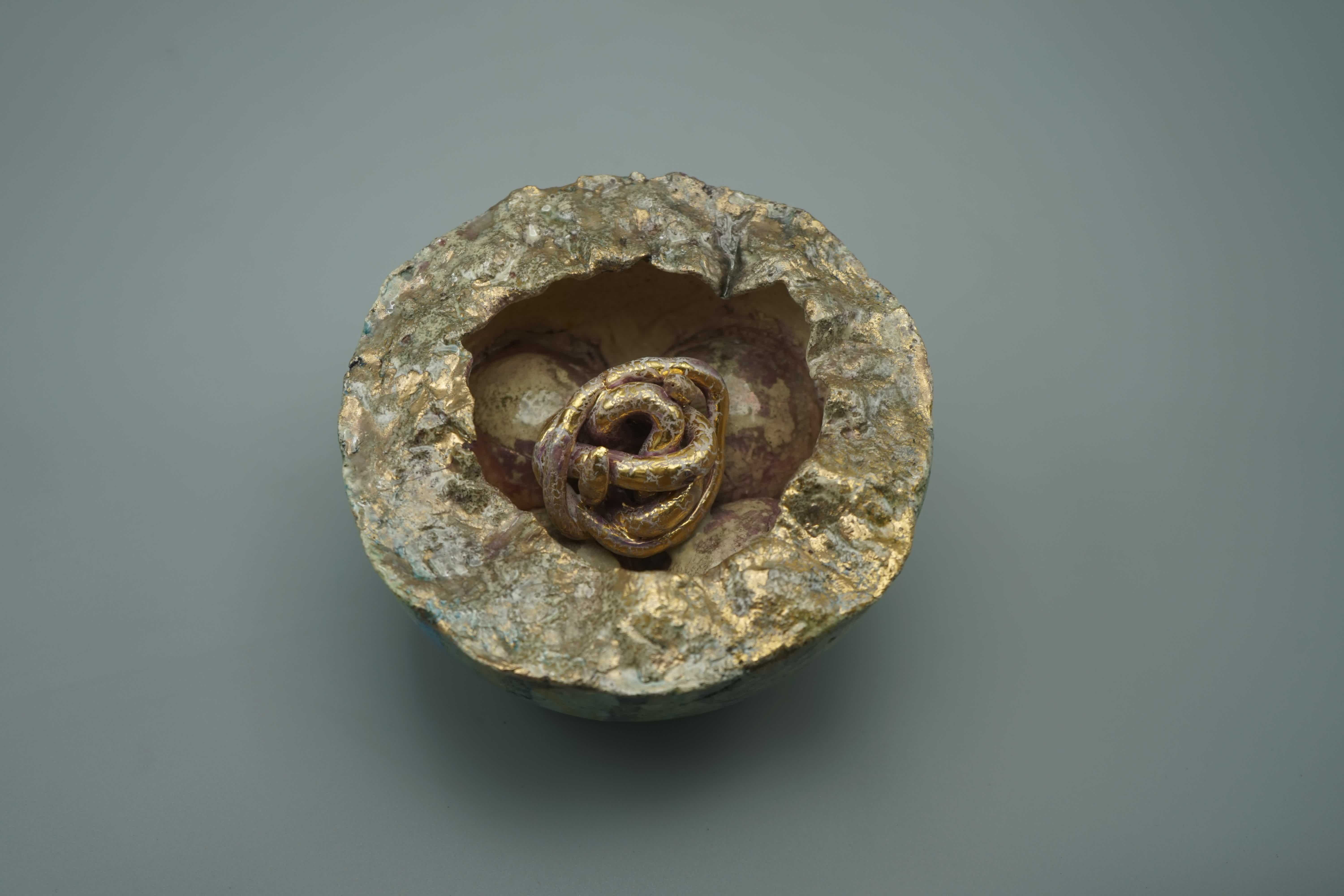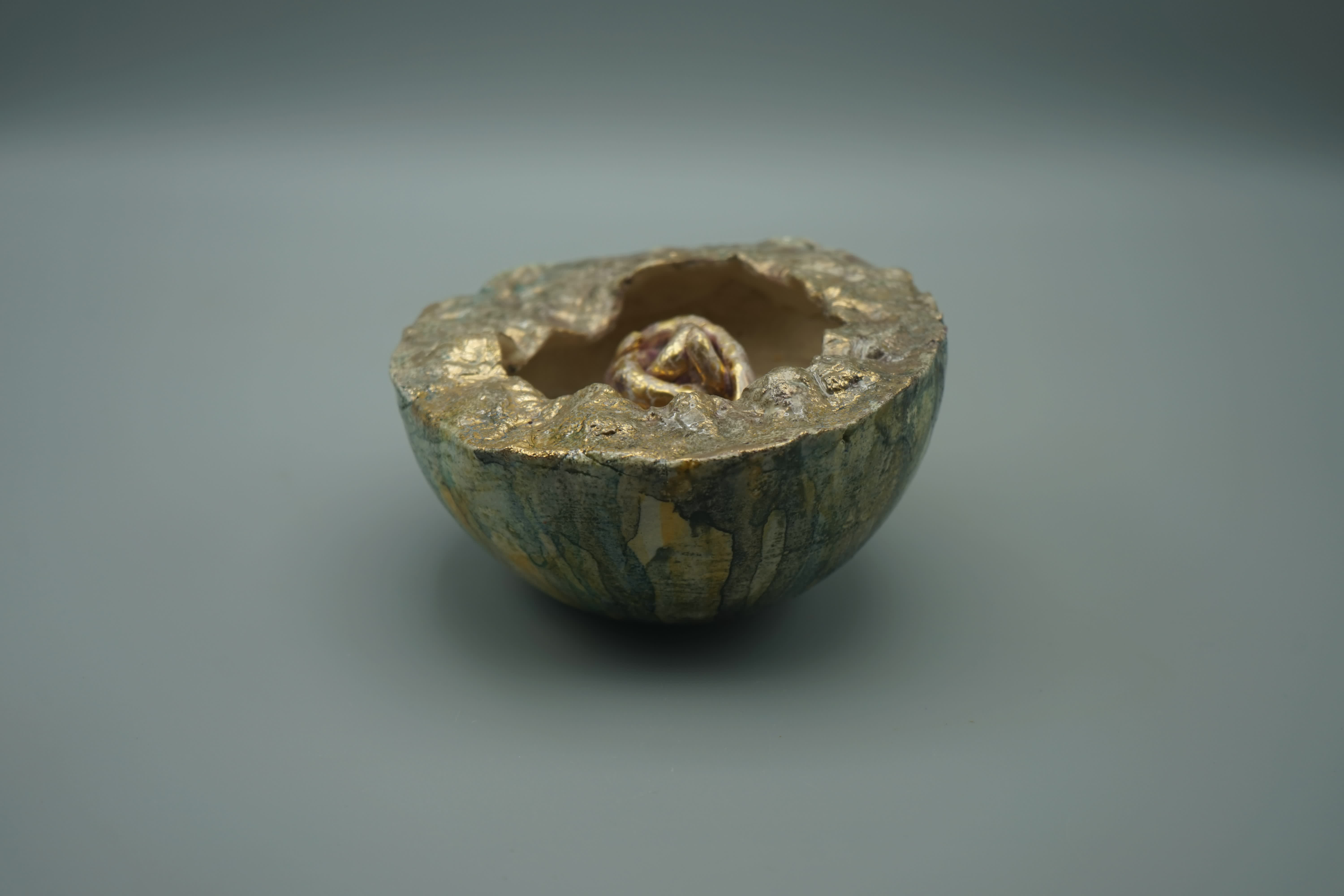 Ciotola semirefrattario smaltato, decorazioni oro 3°fuoco