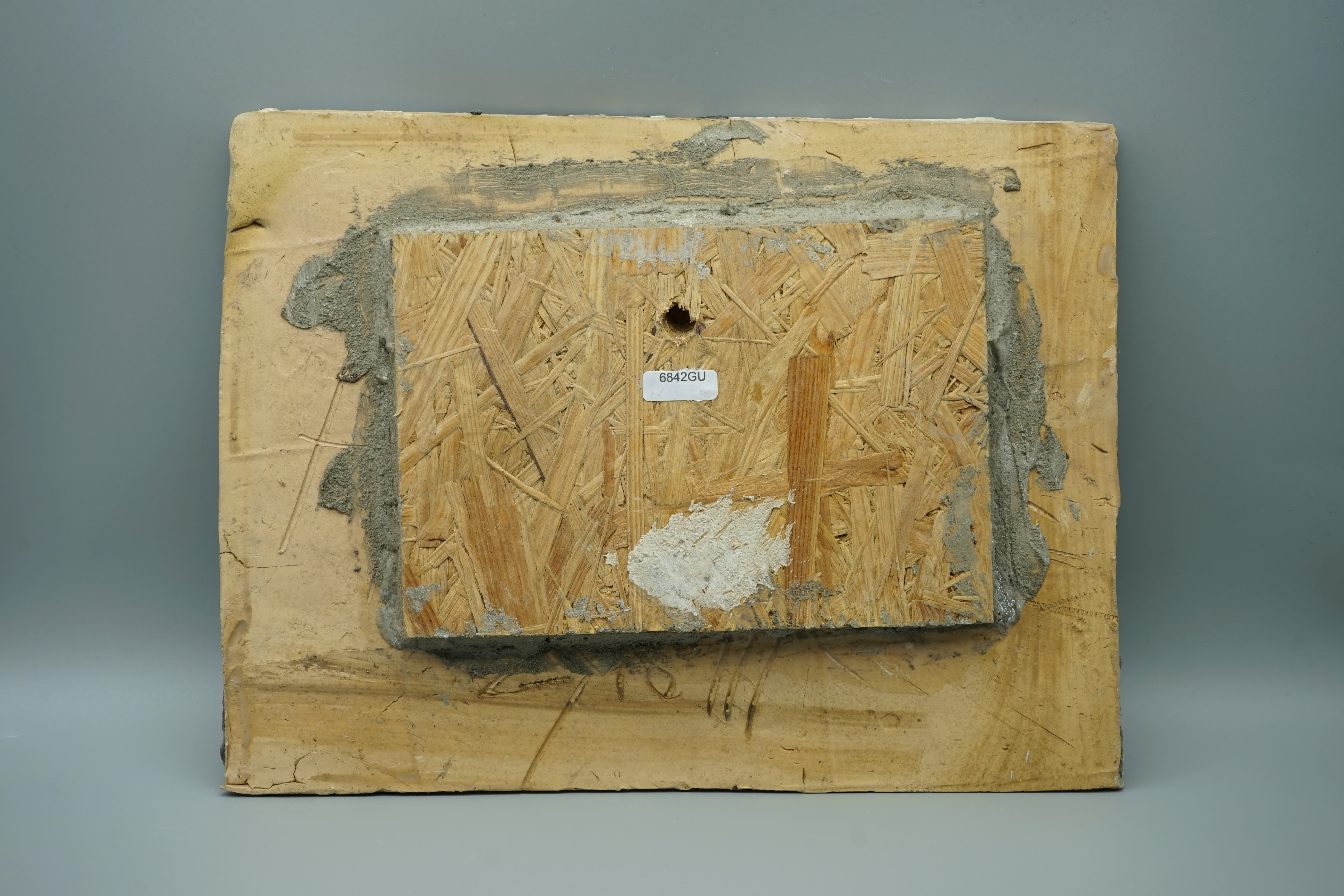 Placca terracotta graffita, ingobbiata e smaltata, decorata oro 3°fuoco, supporto legno